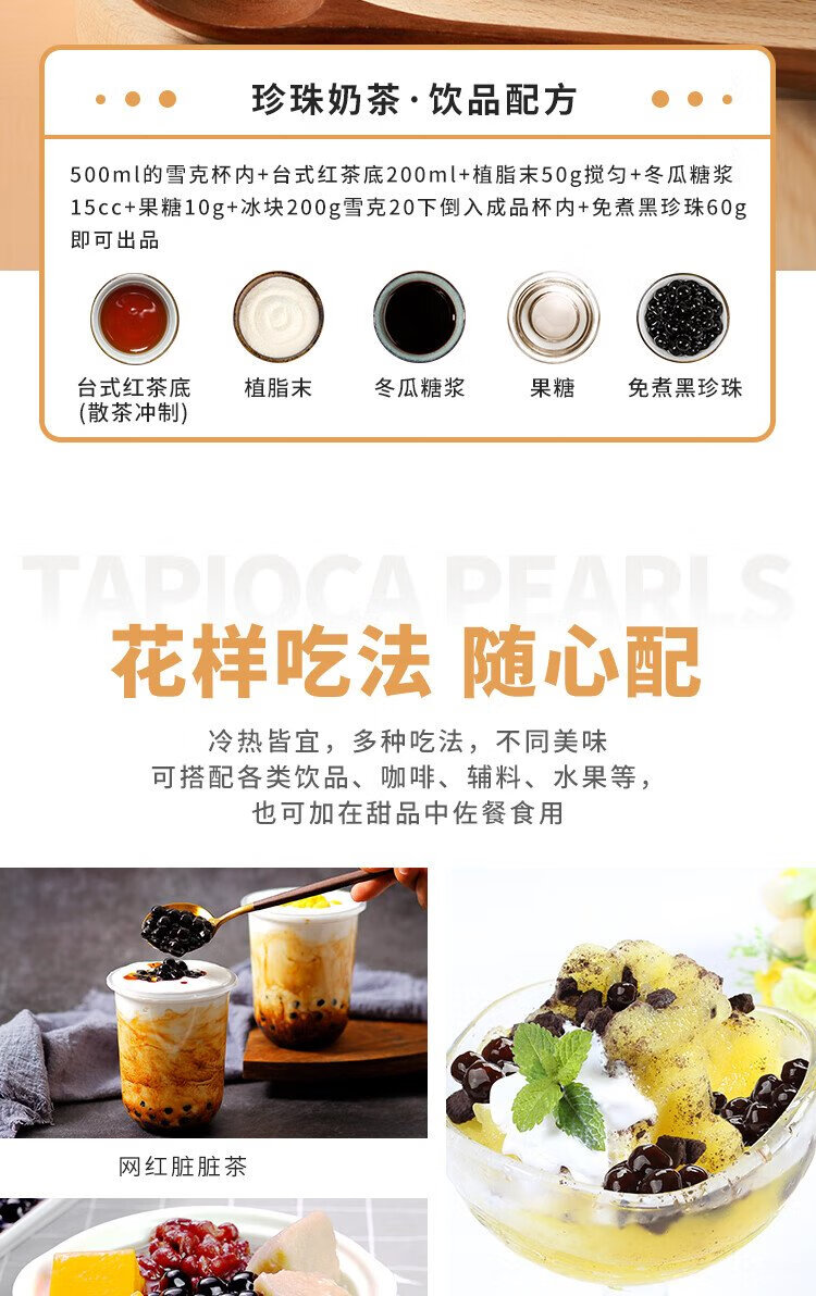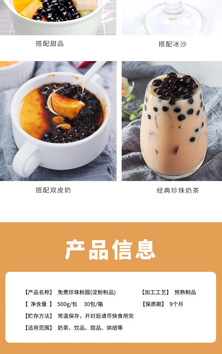 Guangxi Premium No-cook Pearl Rice Balls 500g Homemade Black Pearl Dessert Baking Ingredients Pearl Milk Tea Shop Ingredients