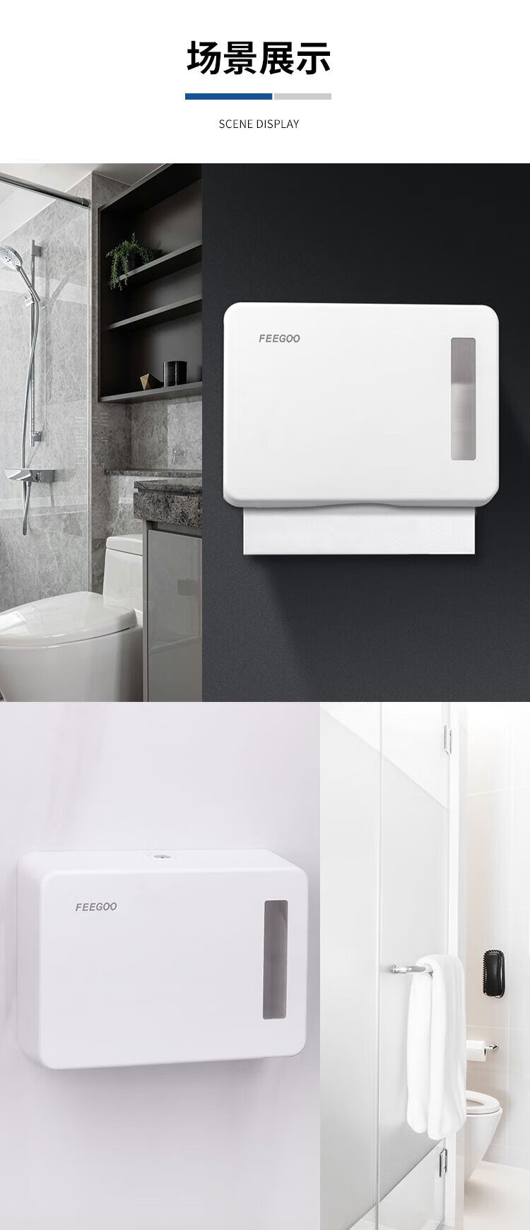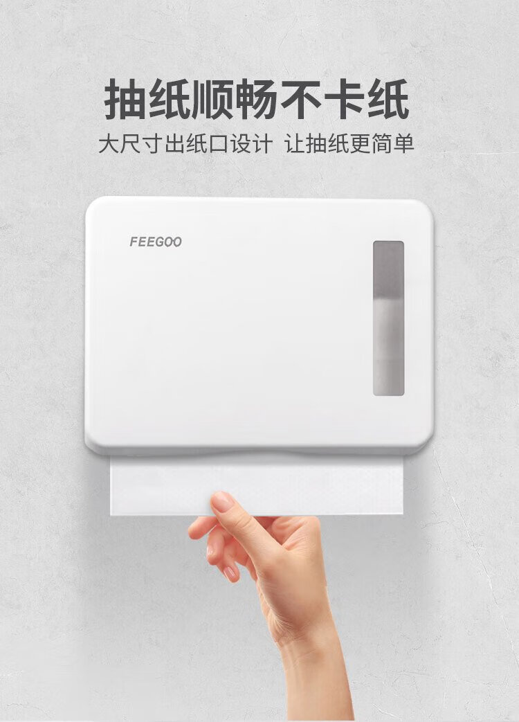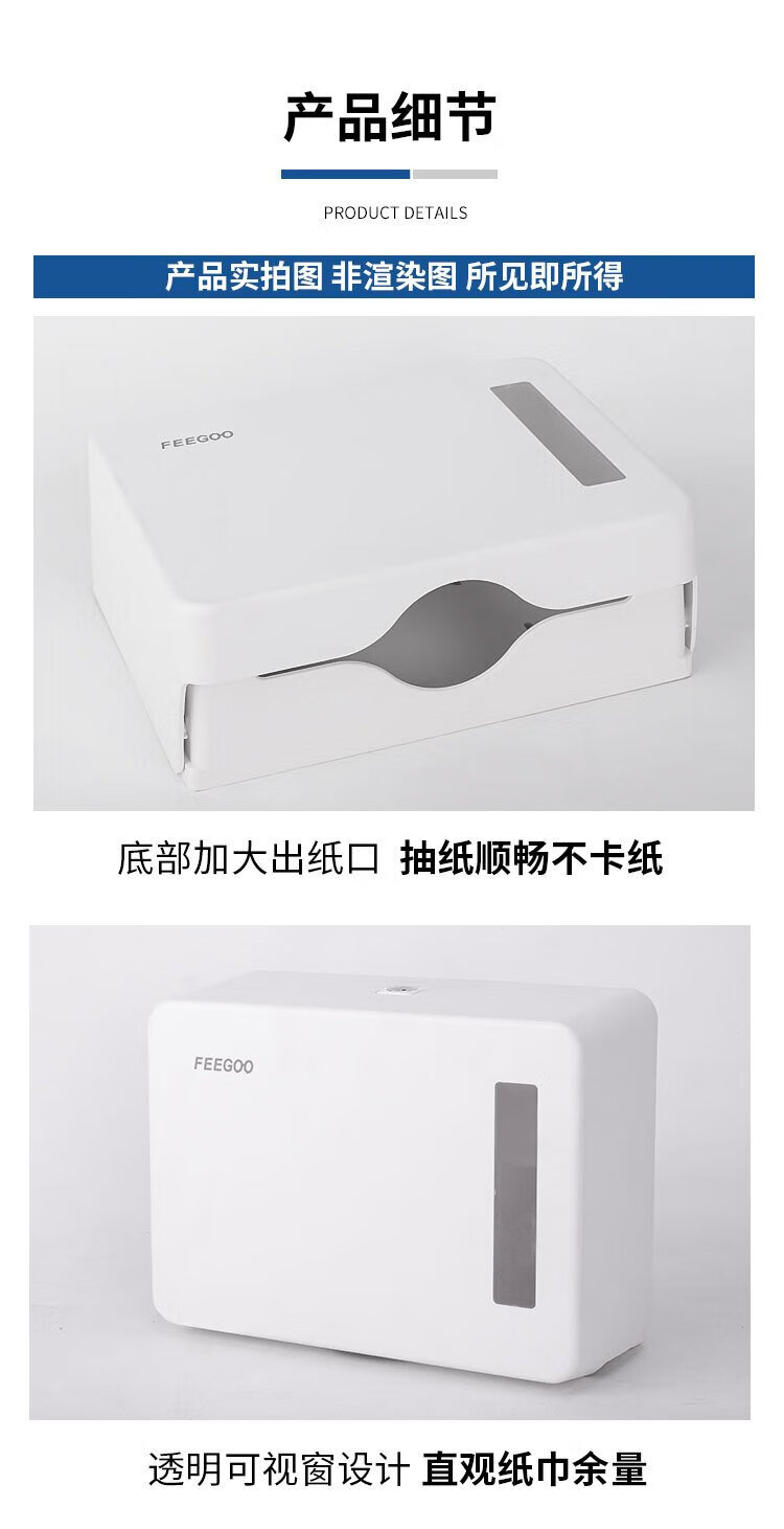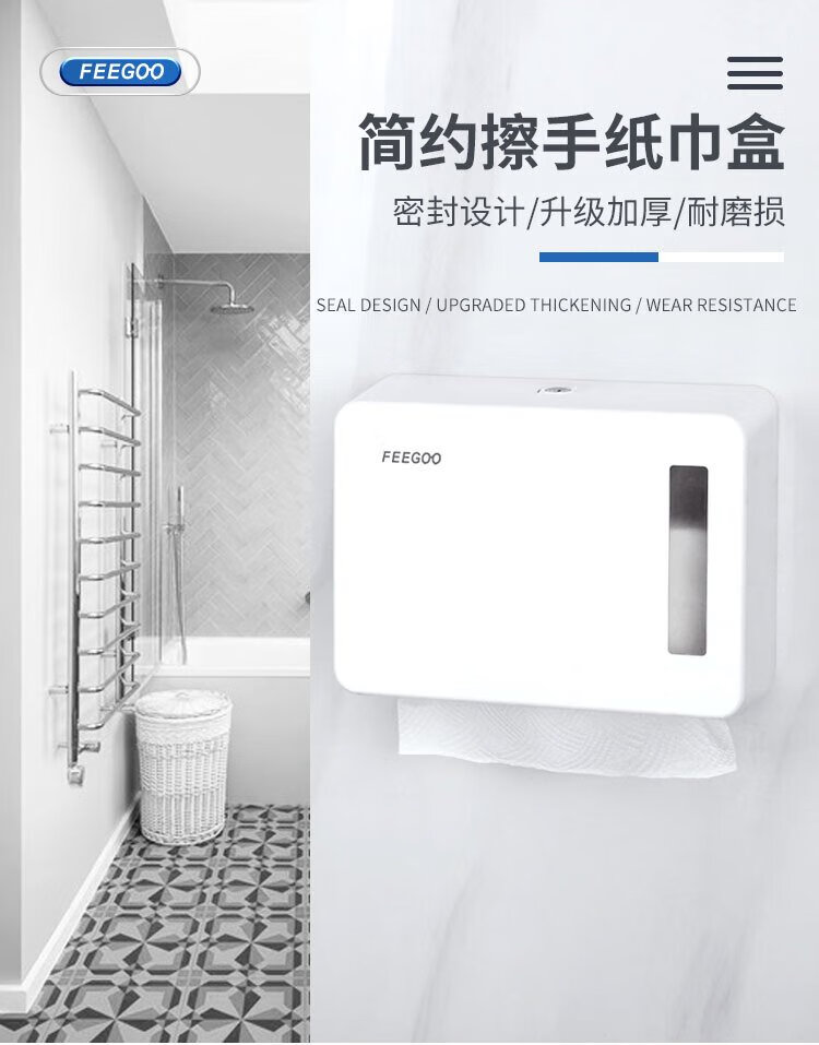 FEEGOO hand tissue box punch-free wall-mounted hotel bathroom commercial simple white FG5023