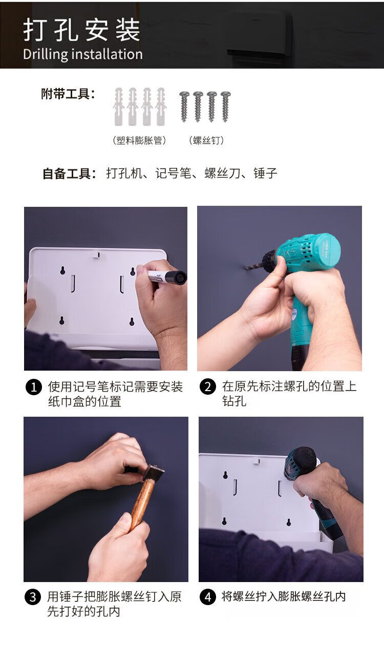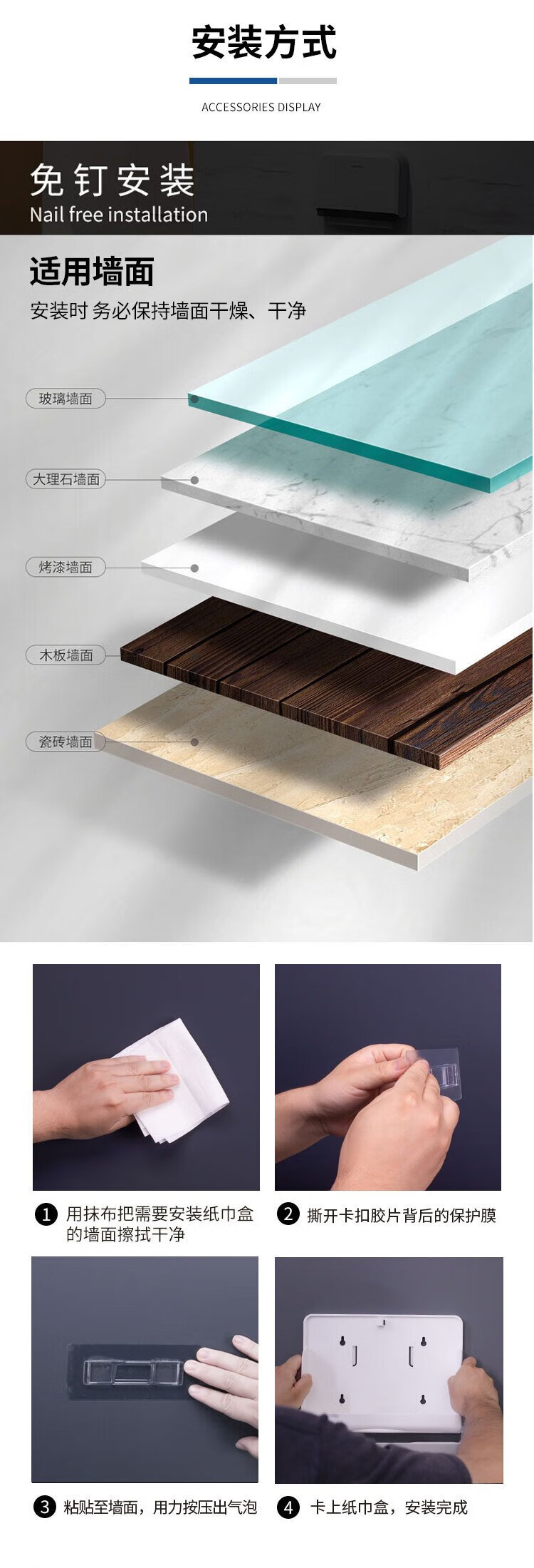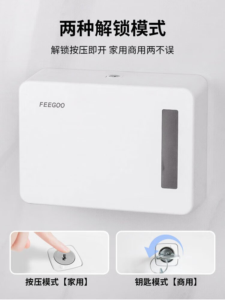 FEEGOO hand tissue box punch-free wall-mounted hotel bathroom commercial simple white FG5023