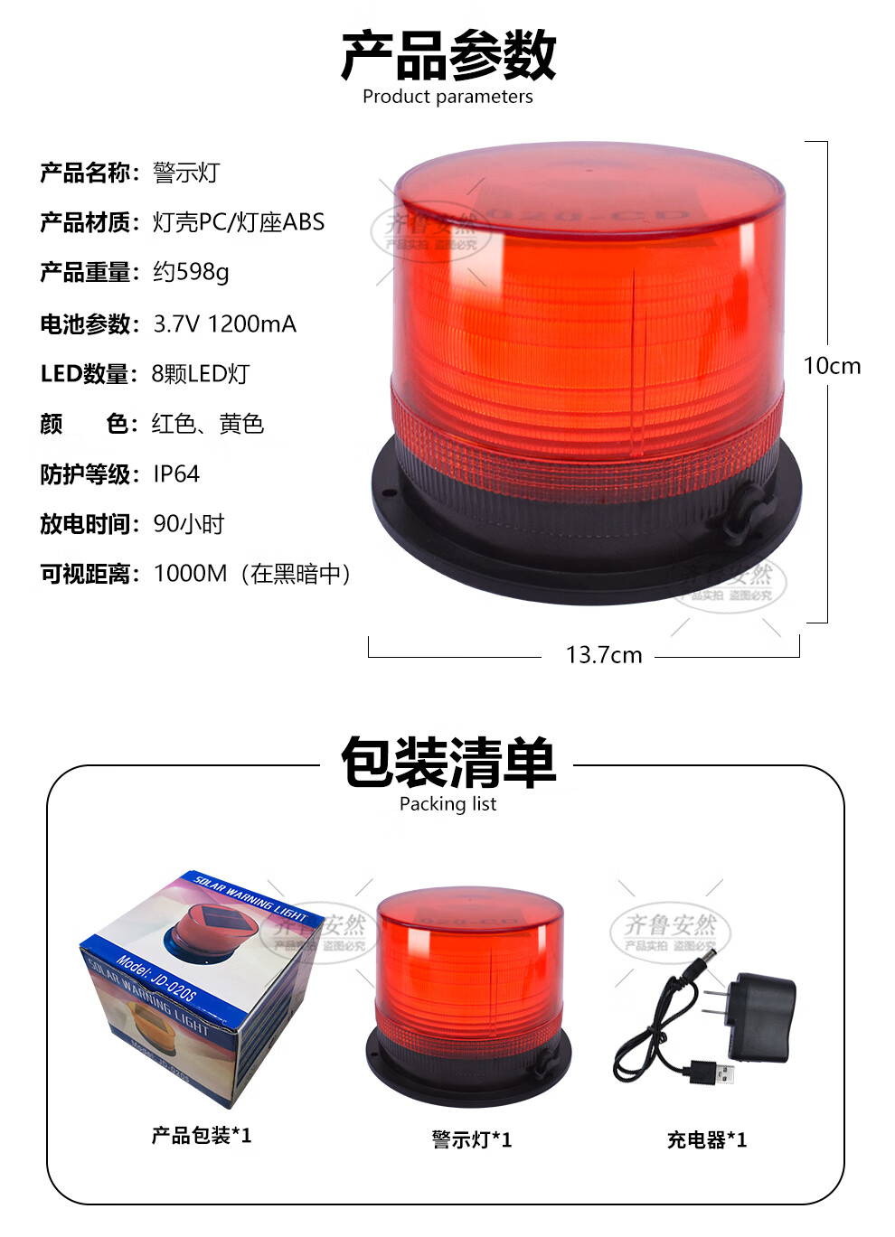 Qilu Anran car LED warning light, ceiling flashing light, strong magnetic school bus warning light, engineering forklift warning fault light, traffic roadblock signal light, lithium battery charging large yellow