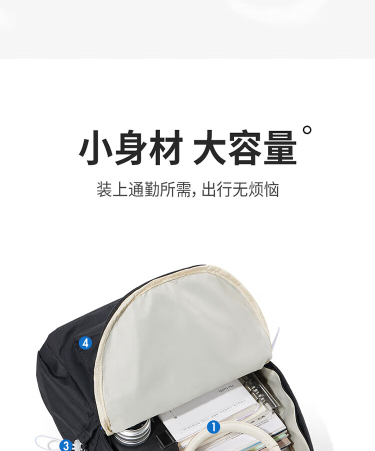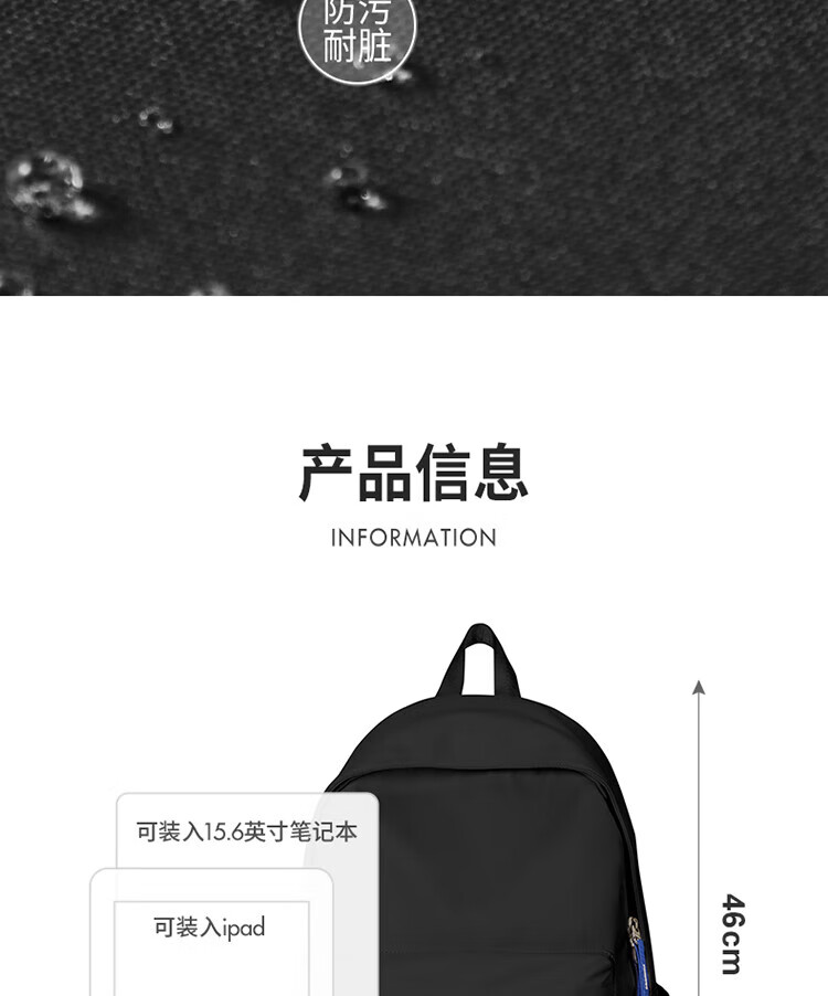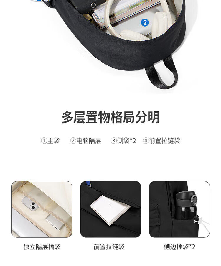 Landcase schoolbag female junior high school high school college student backpack backpack large capacity travel computer bag 1607 black