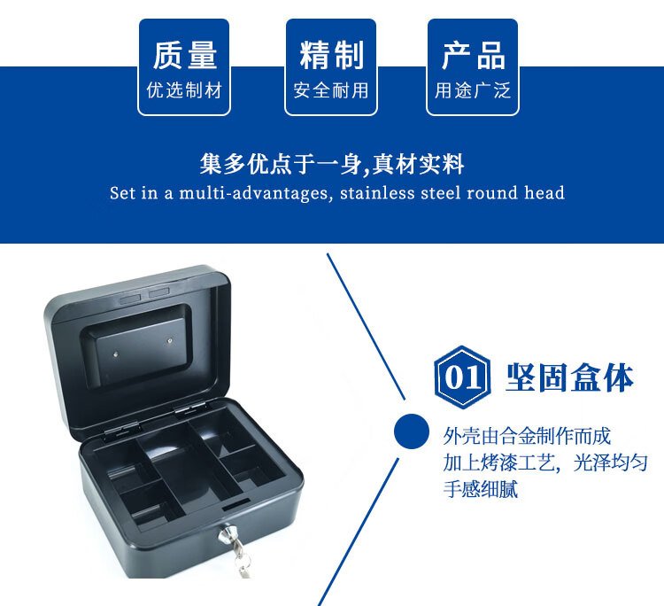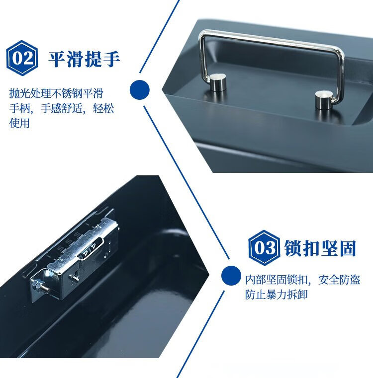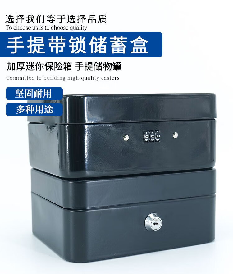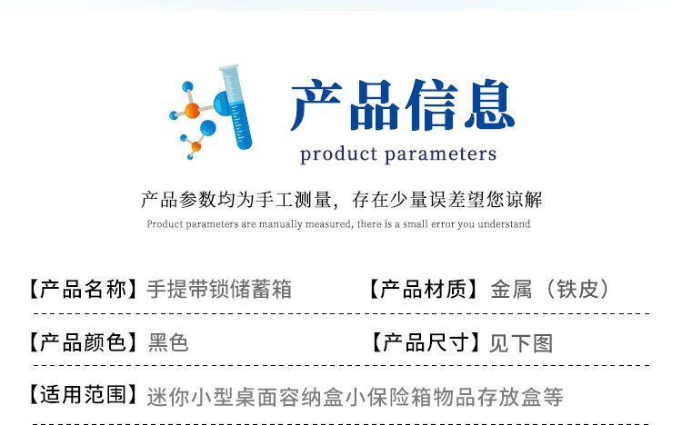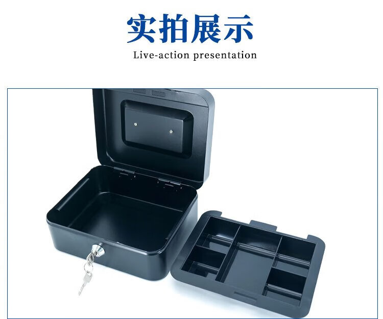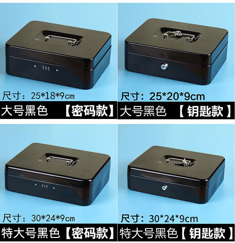 Hasdick portable cashier box with lock, savings box, safe, tool storage box, key, black 25*20*9cm HKCL-854