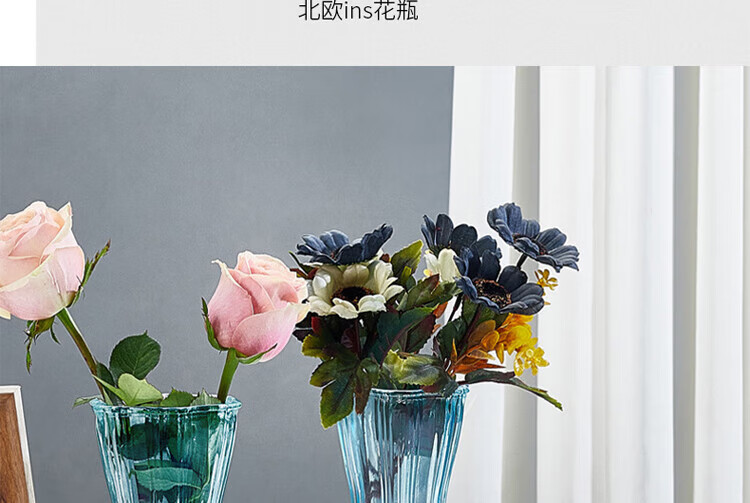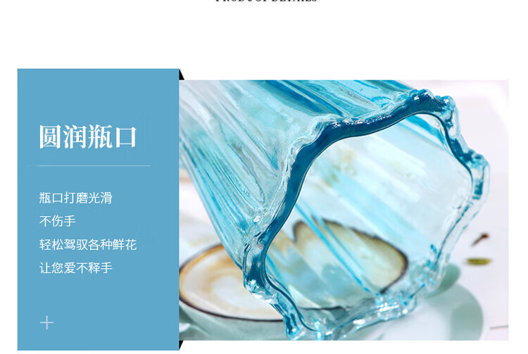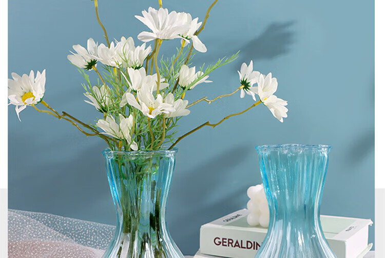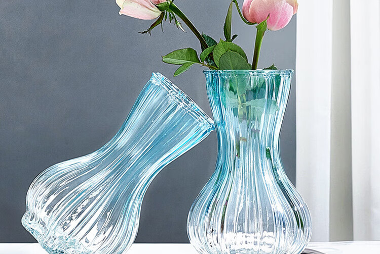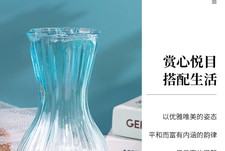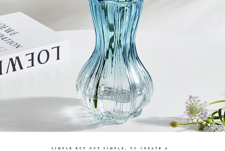 Shengshi Taibao glass vase transparent plant vase hydroponics living room ornaments color gradient blue garlic