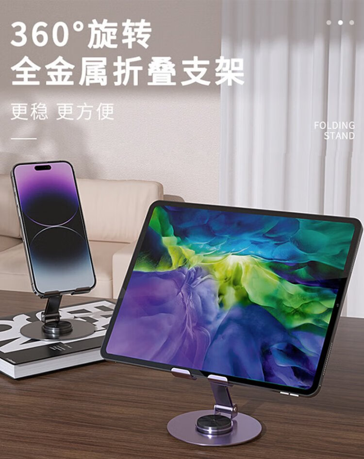 Dipur mobile phone desktop holder ipad tablet metal mobile phone holder portable folding liftable rotating live streaming drama shooting multi-functional lazy mobile phone holder
