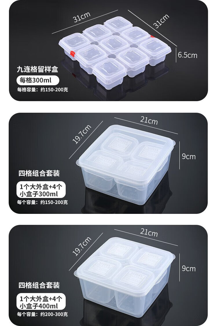 Zhaoshen Sample Keeping Box Kindergarten School Hotel Hotel Fresh-keeping Material Sampling Box Four Connected Large Capacity 1000ml Single Compartment 250ml Free 20 Labels Beijing Warehouse Flash Delivery