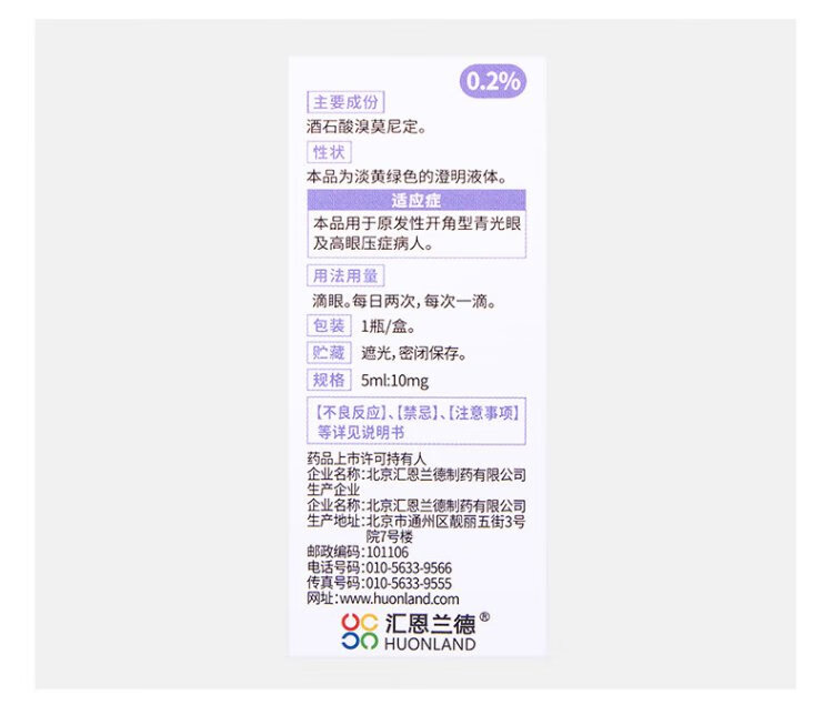 Hui Enland Brimonidine Tartrate Eye Drops 5ml 10mg/box