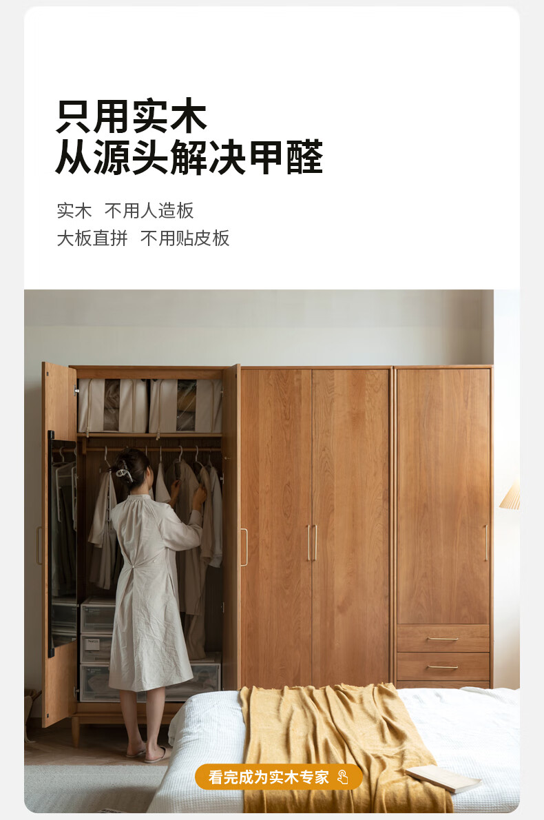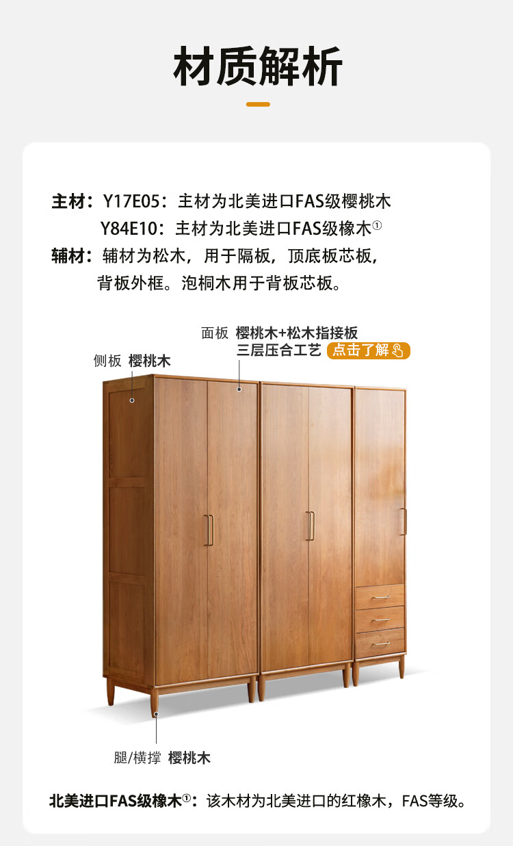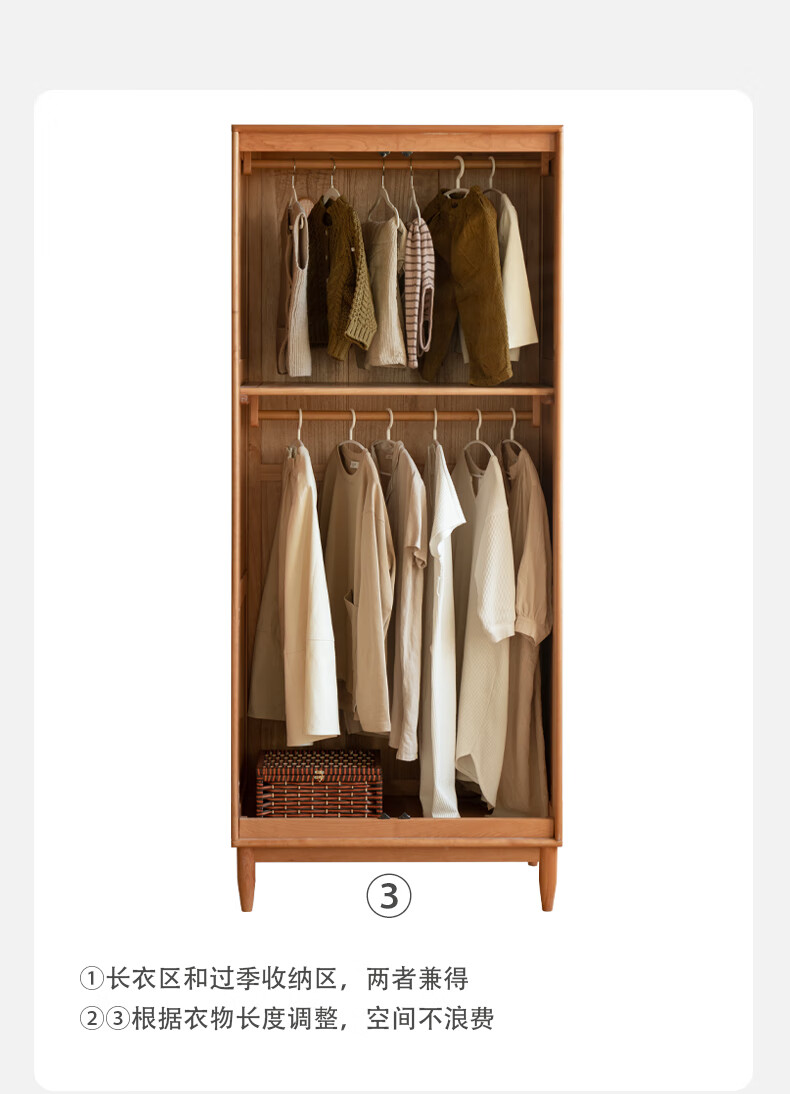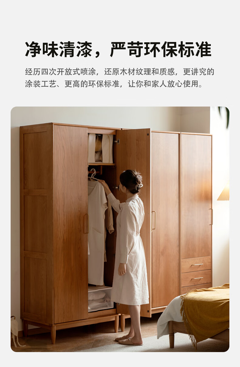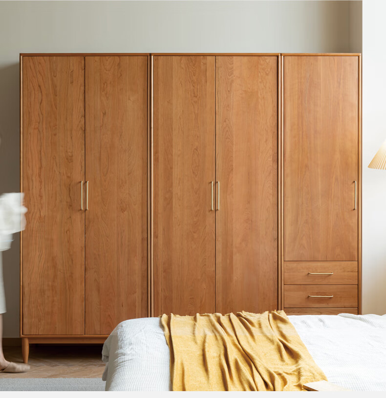 Genji Muyu solid wood wardrobe medieval cherry wood storage cabinet wardrobe bedroom cabinet 0.56 meter single door wardrobe