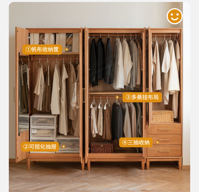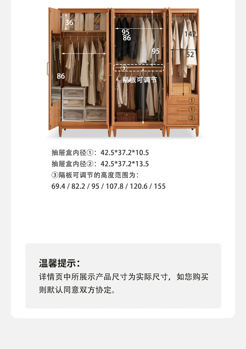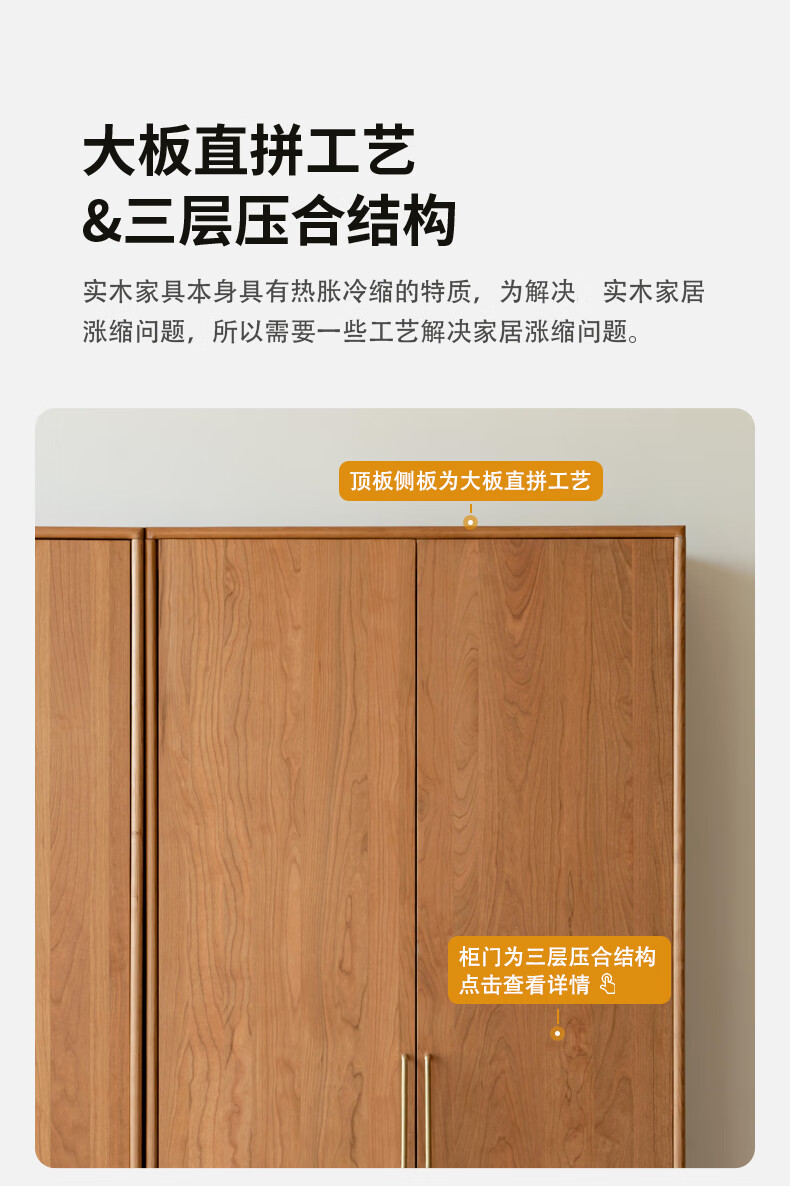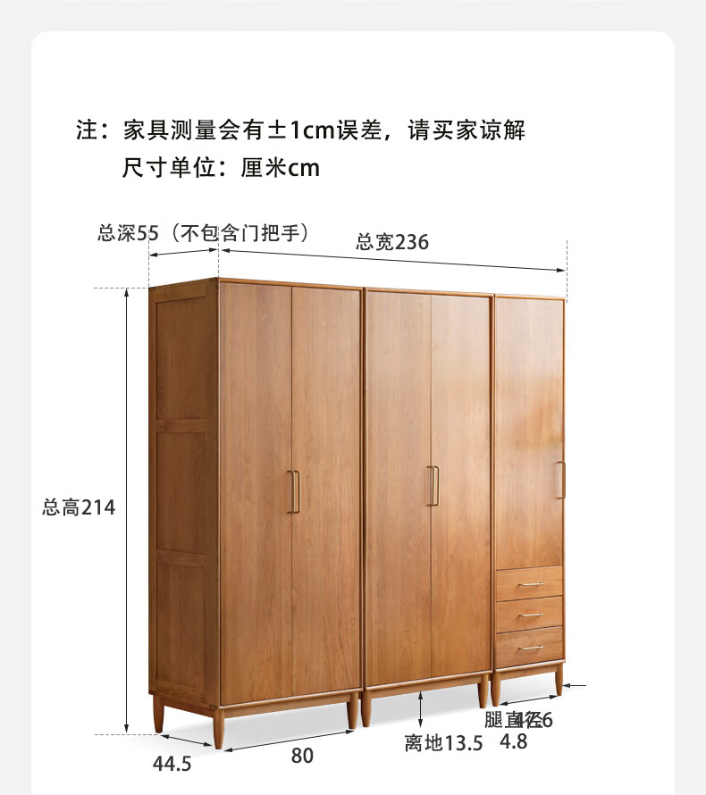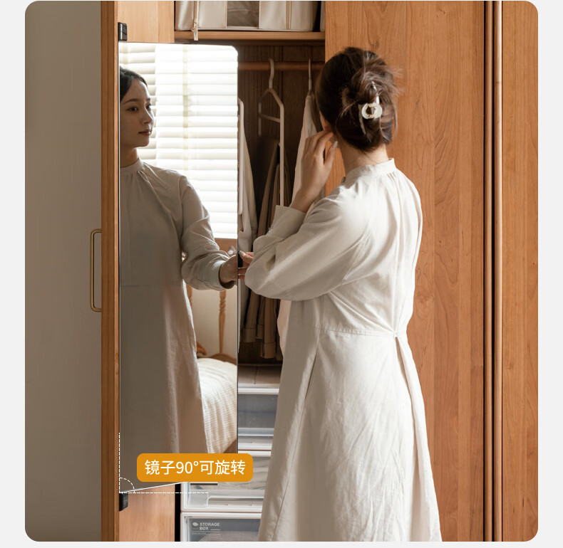 Genji Muyu solid wood wardrobe medieval cherry wood storage cabinet wardrobe bedroom cabinet 0.56 meter single door wardrobe