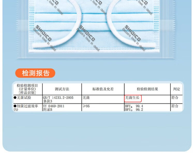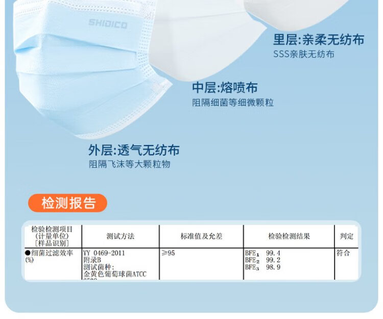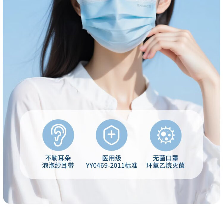 SHIDICO medical surgical masks are individually packaged, one bag, sterilization grade, 100 pieces, disposable, dust-proof, breathable, wide ear straps