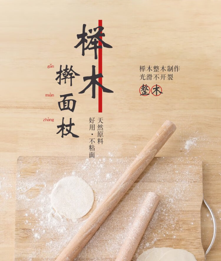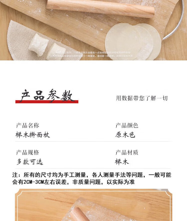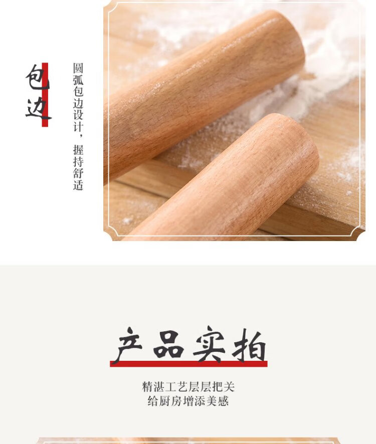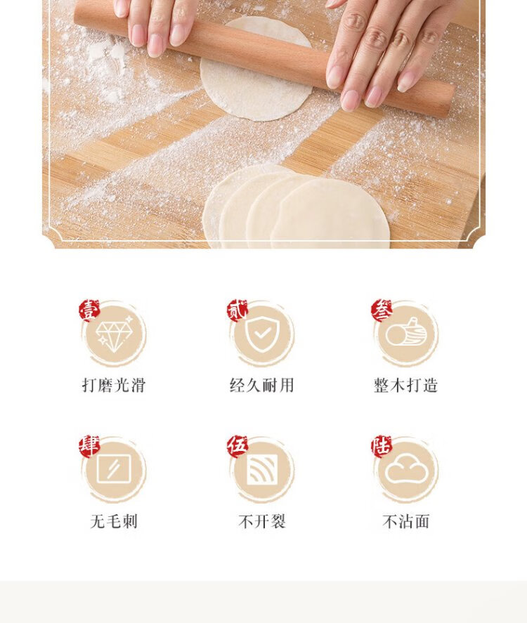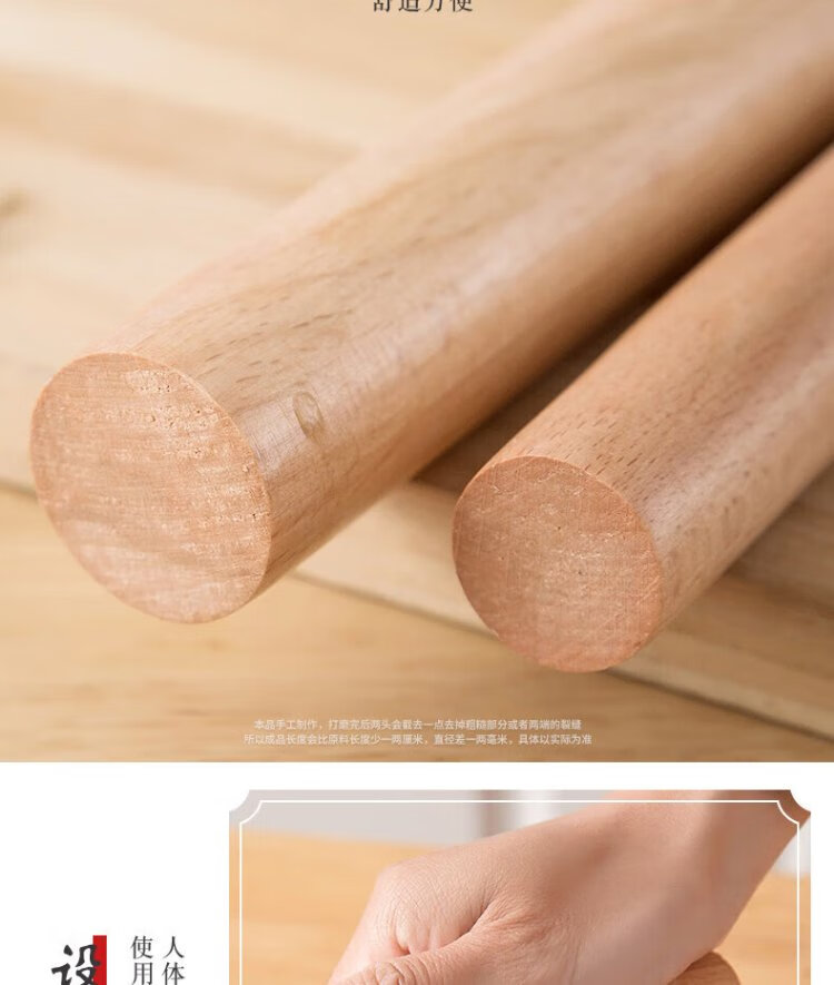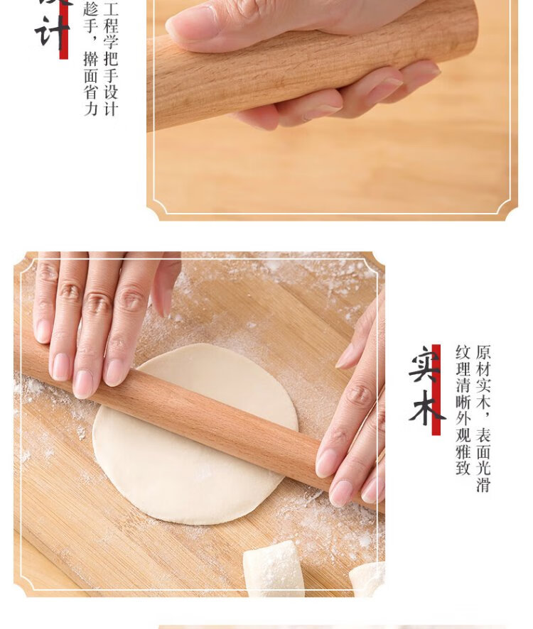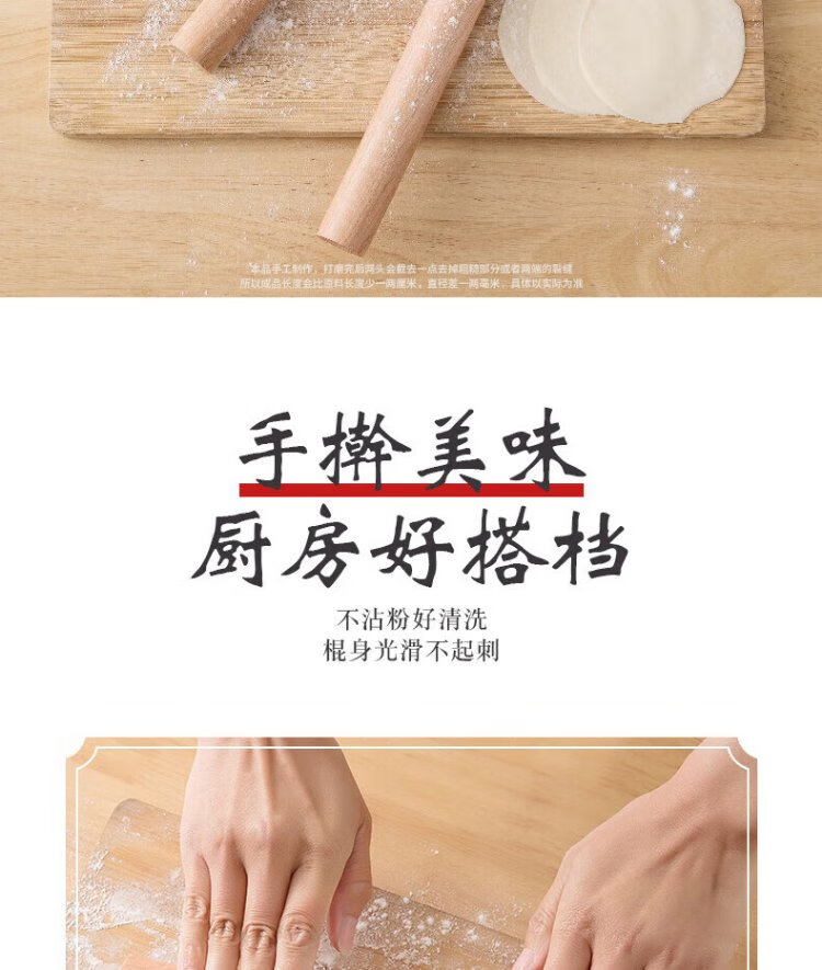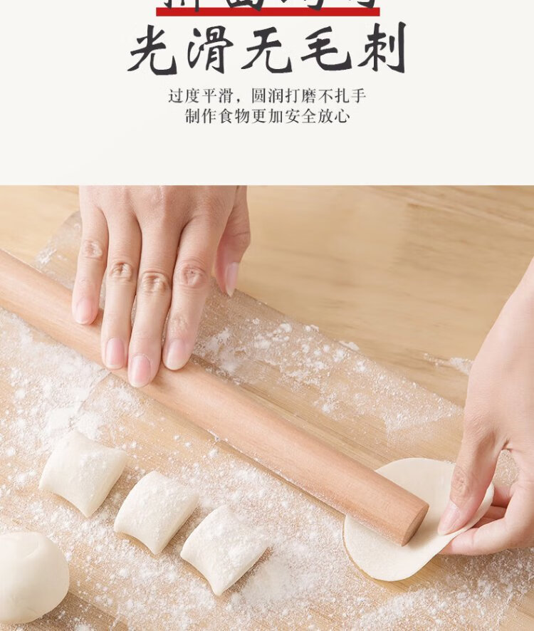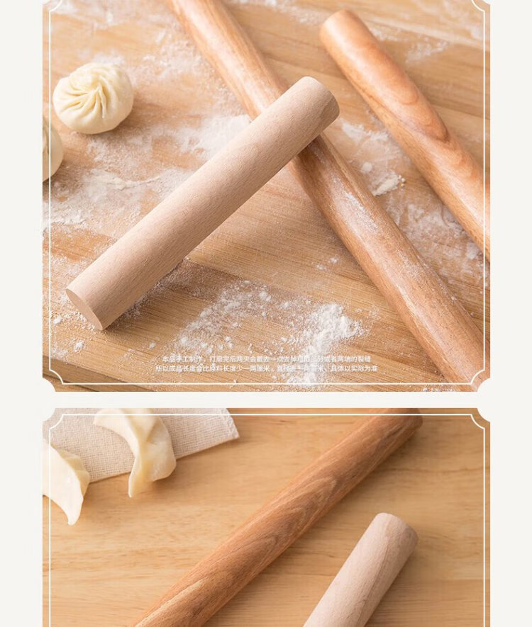 Dimple solid wood rolling pin for household use, rolling pin, dumpling skin artifact, non-stick baking (16cm)