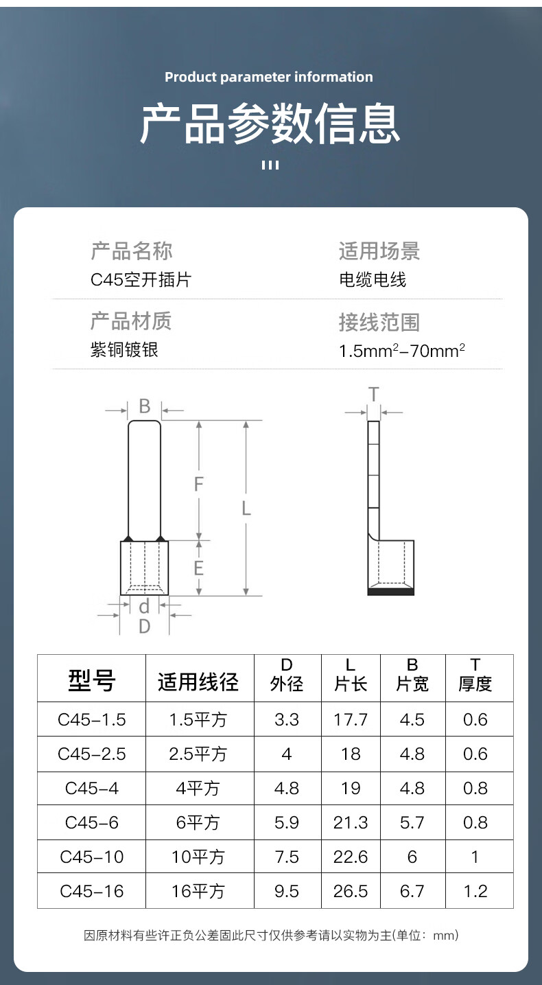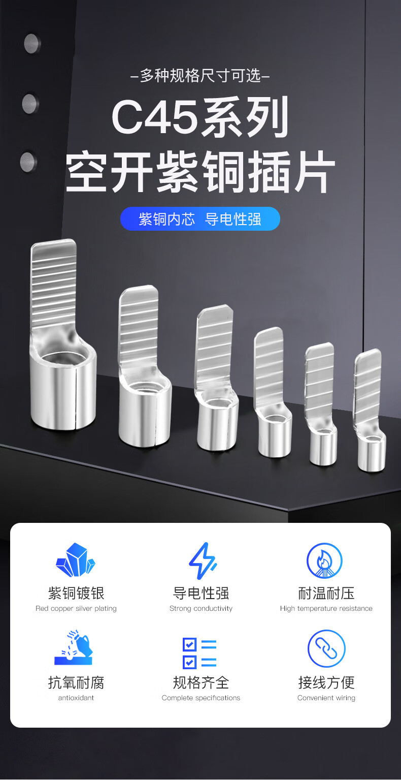 Andatong C45 air switch insert copper cold-pressed terminal block air switch insert C45-10 (100 pieces)