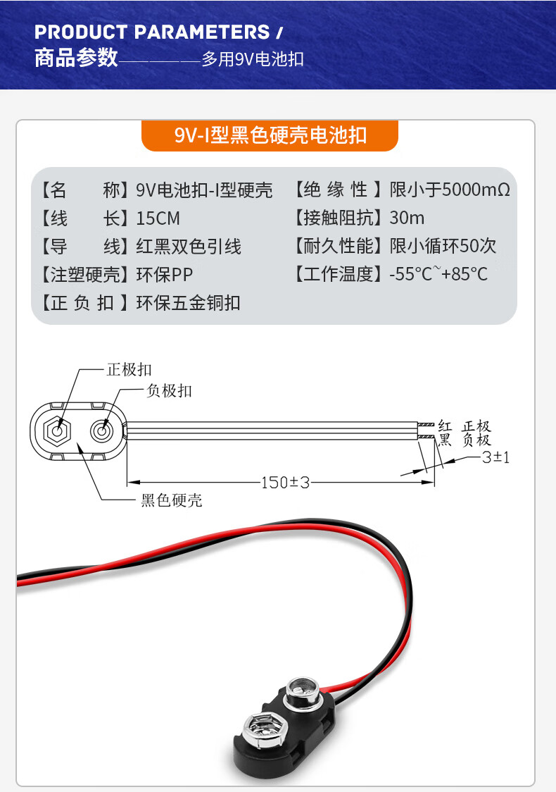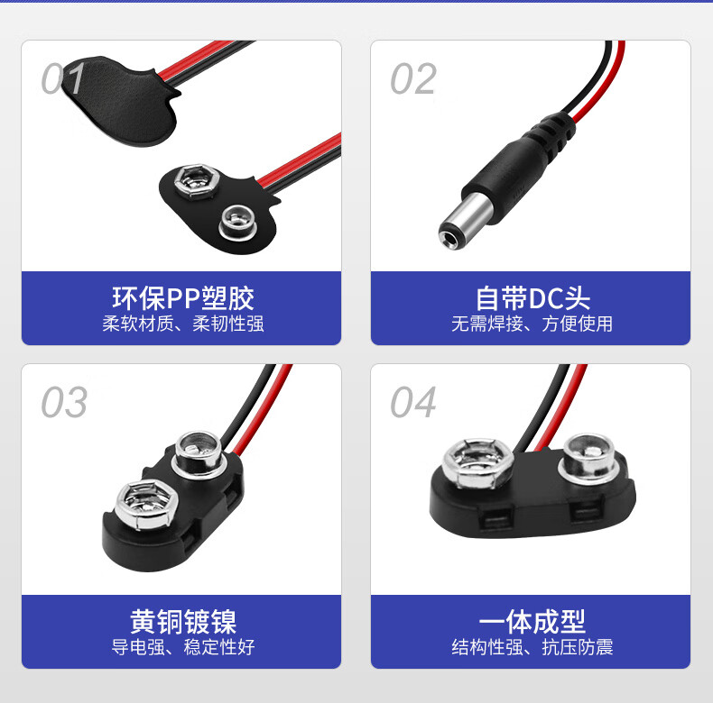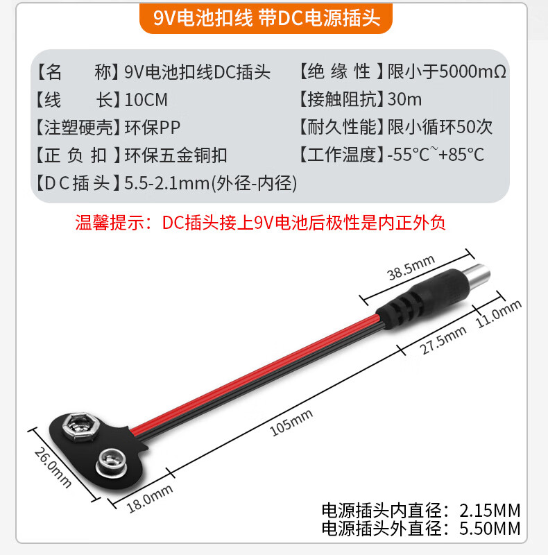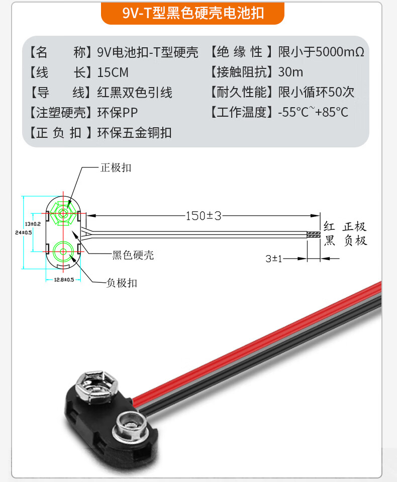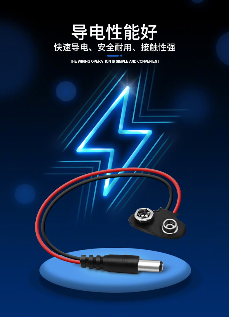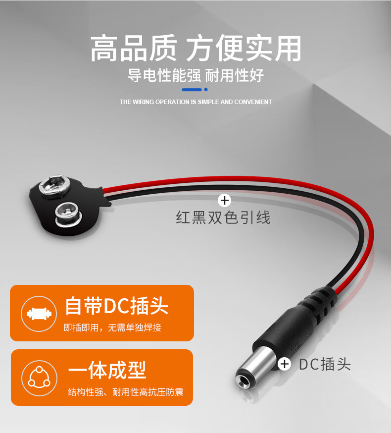 Andatong 9V battery buckle connector T/I-shaped battery box with lead DC power plug T-shaped battery buckle 9V--15CM/20 pieces