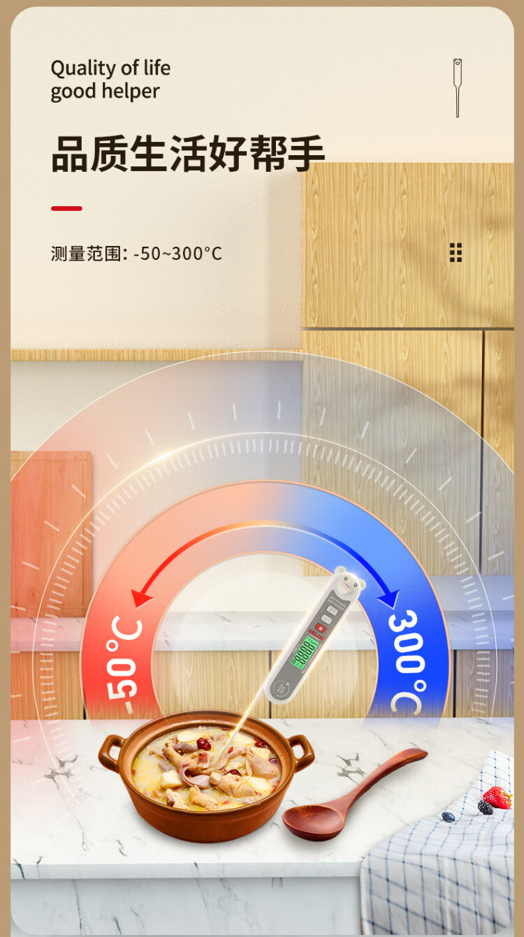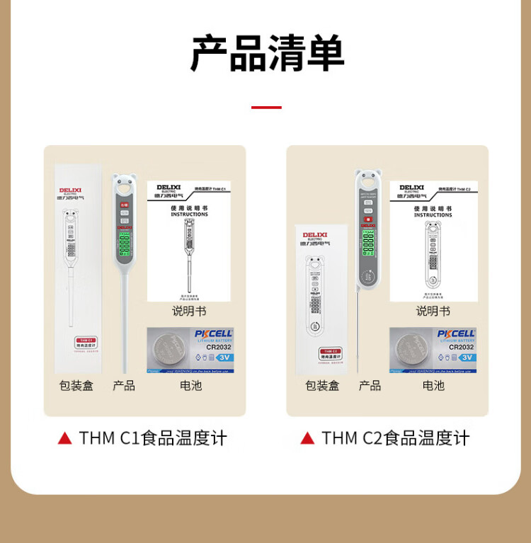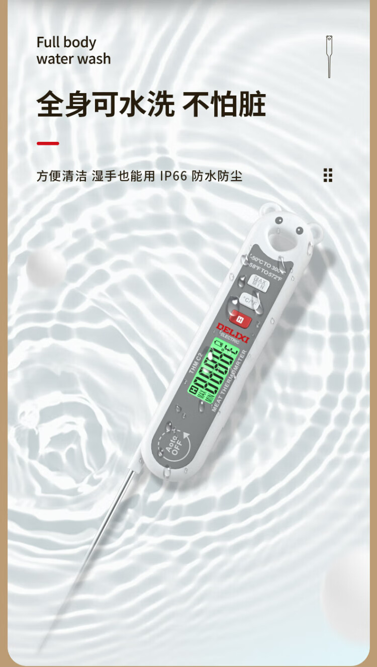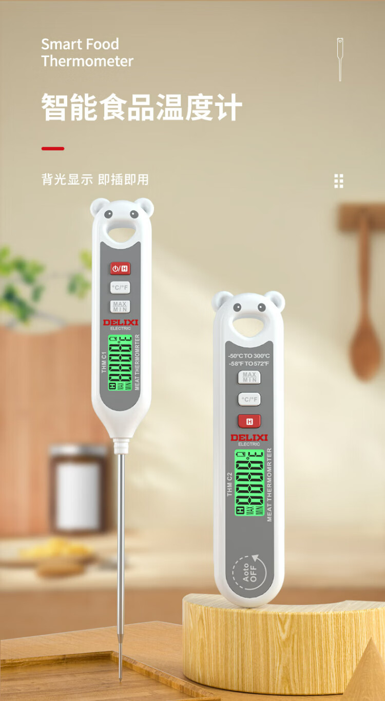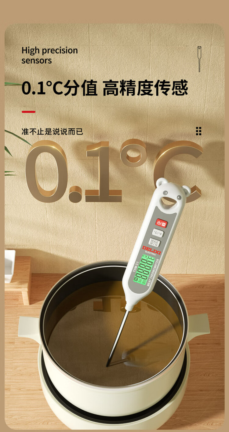 Delixi Electric Food Thermometer Probe Kitchen Oil Thermometer Baby Milk Thermometer Water Thermometer Electronic Thermometer Foldable