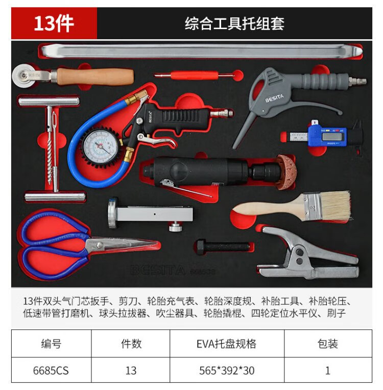 Corini auto repair tool cart 65-piece tire maintenance tool solution upgraded version NO.6685S cold-rolled steel mobile special tool storage auto repair set can be customized