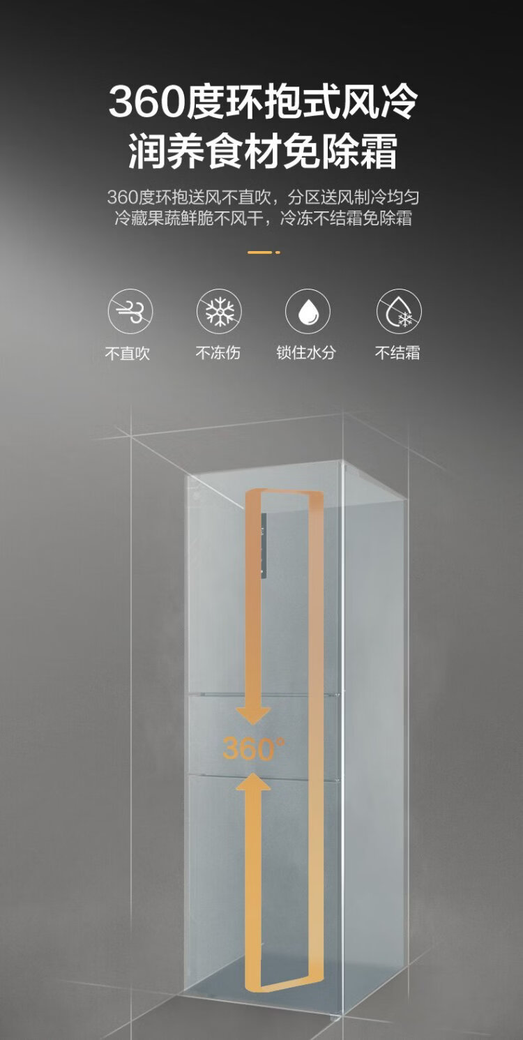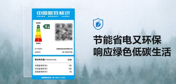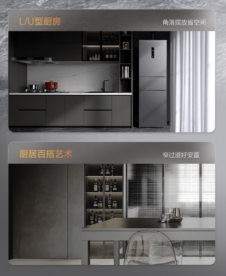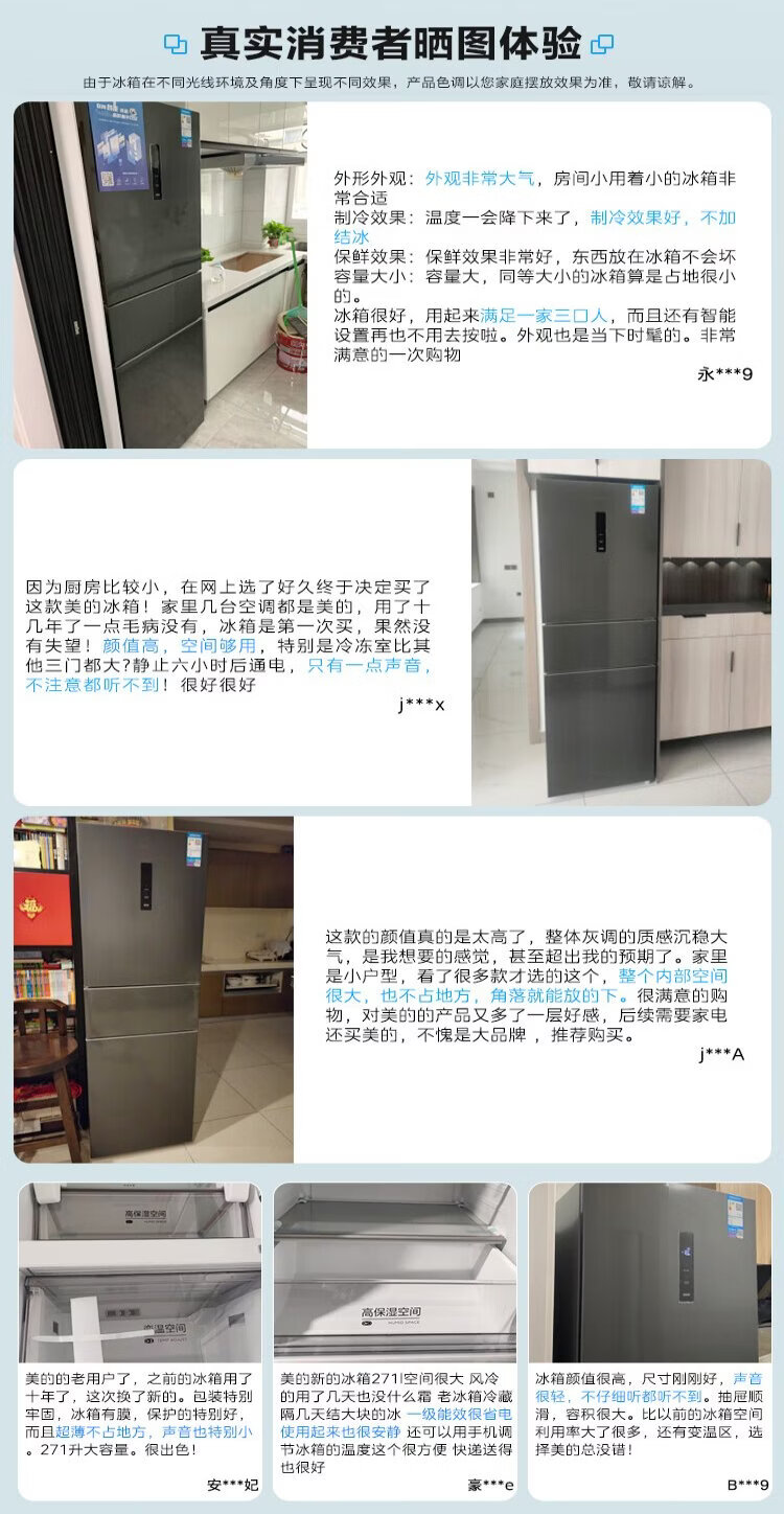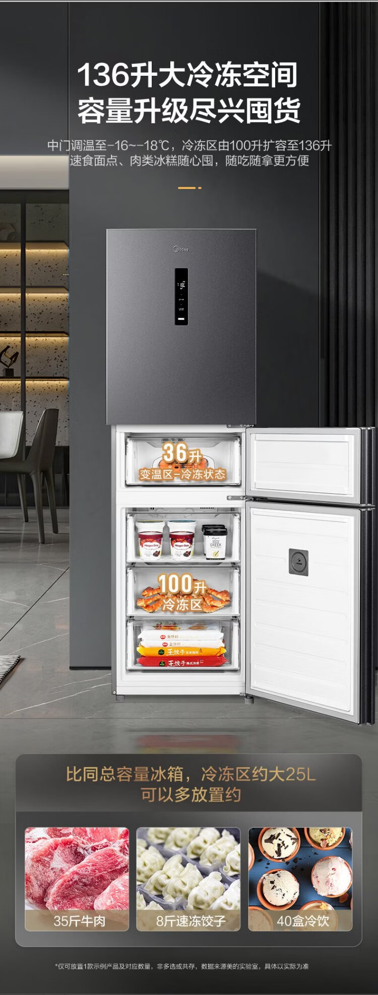 Midea 271 liter three-door refrigerator gray small refrigerator three-door first-class energy efficiency energy-saving air-cooled frost-free double purification home rental MR-283WTPZE national subsidy