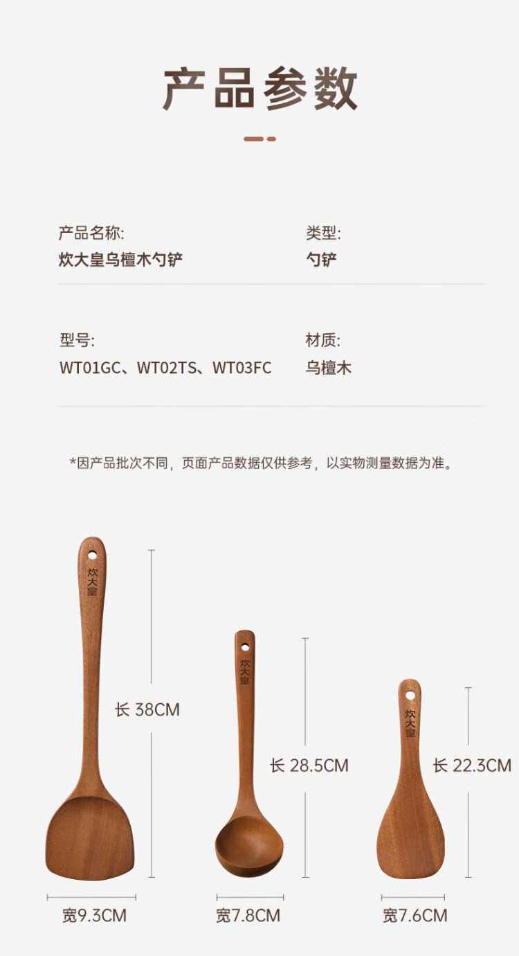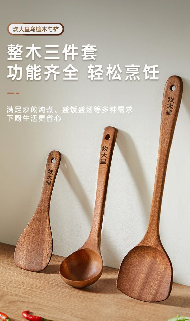 Chuidahuang ebony spatula, household paint-free, wax-free, extended and anti-scalding, wooden spatula for cooking, special non-stick cooking spatula