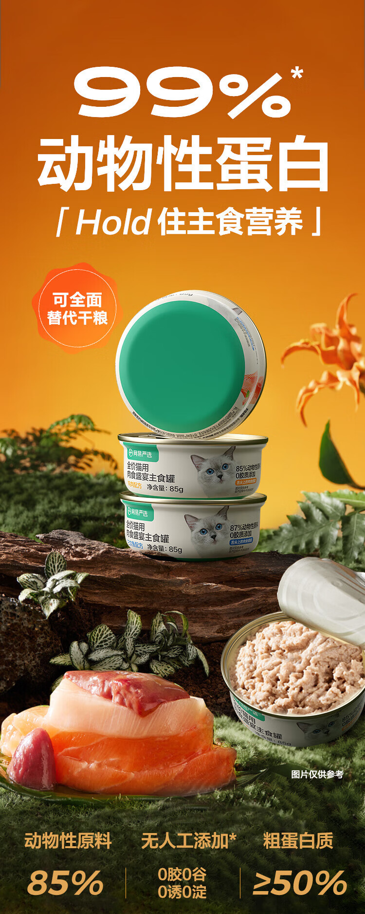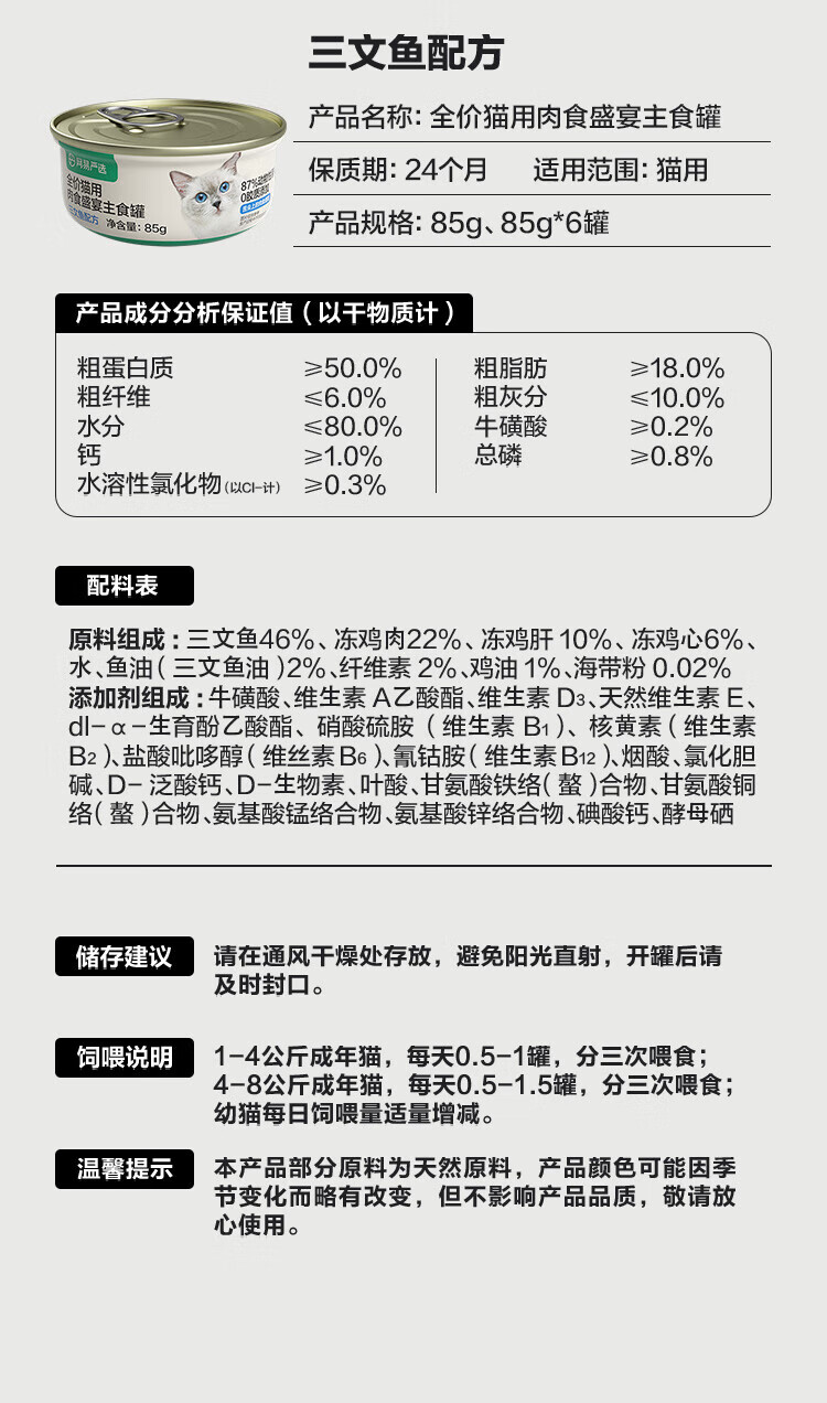 NetEase carefully selects canned cat staple food cans, full price grain-free wet food, gills and fattening staple food cans, chicken flavor 85g*6 cans