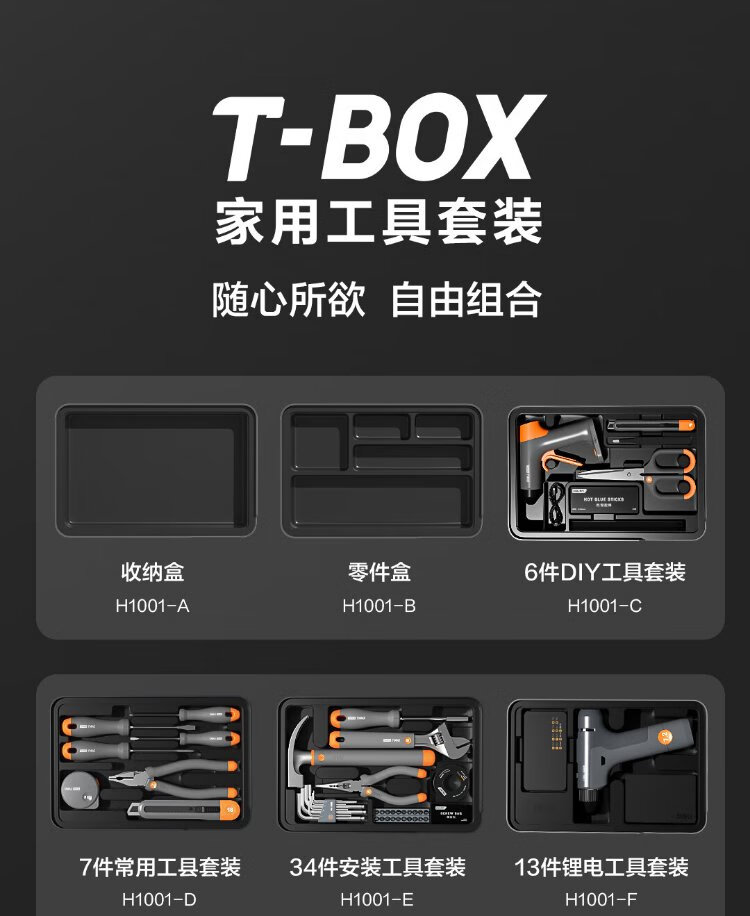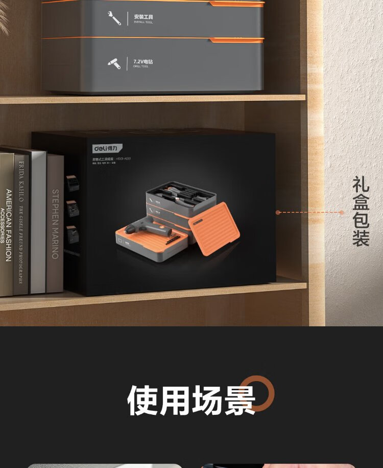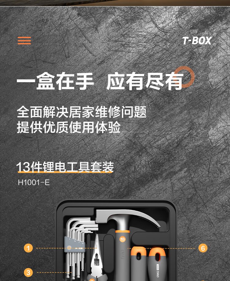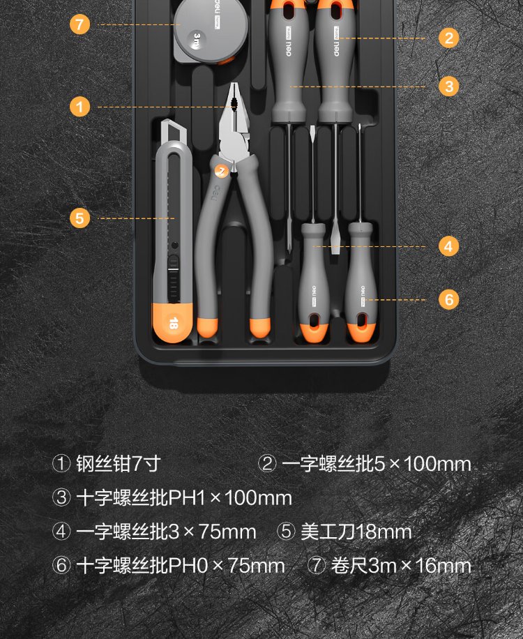 Deli household tool box electric drill electric screwdriver wrench vise tape measure screwdriver combination tool set