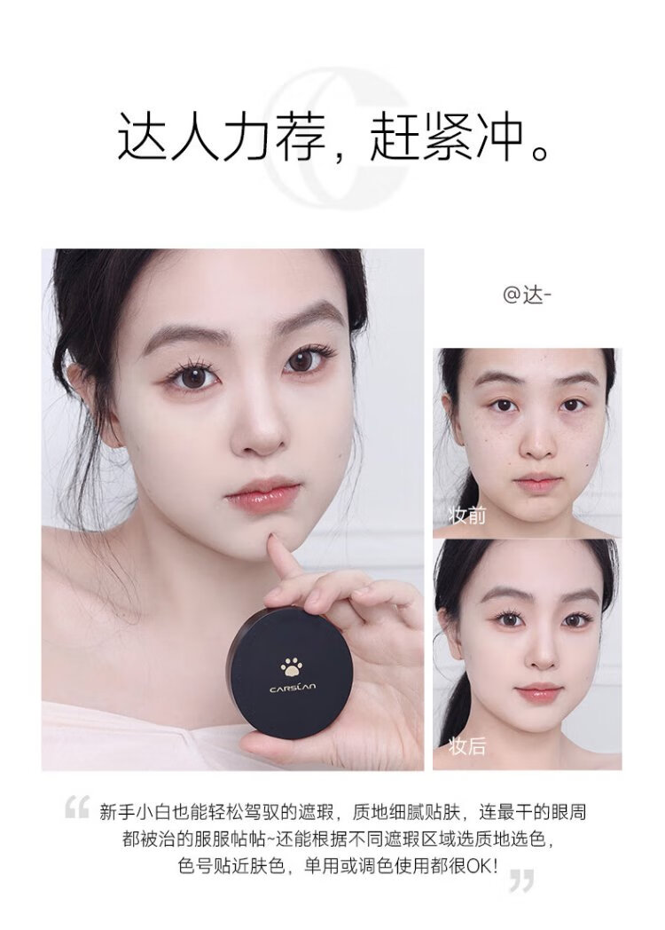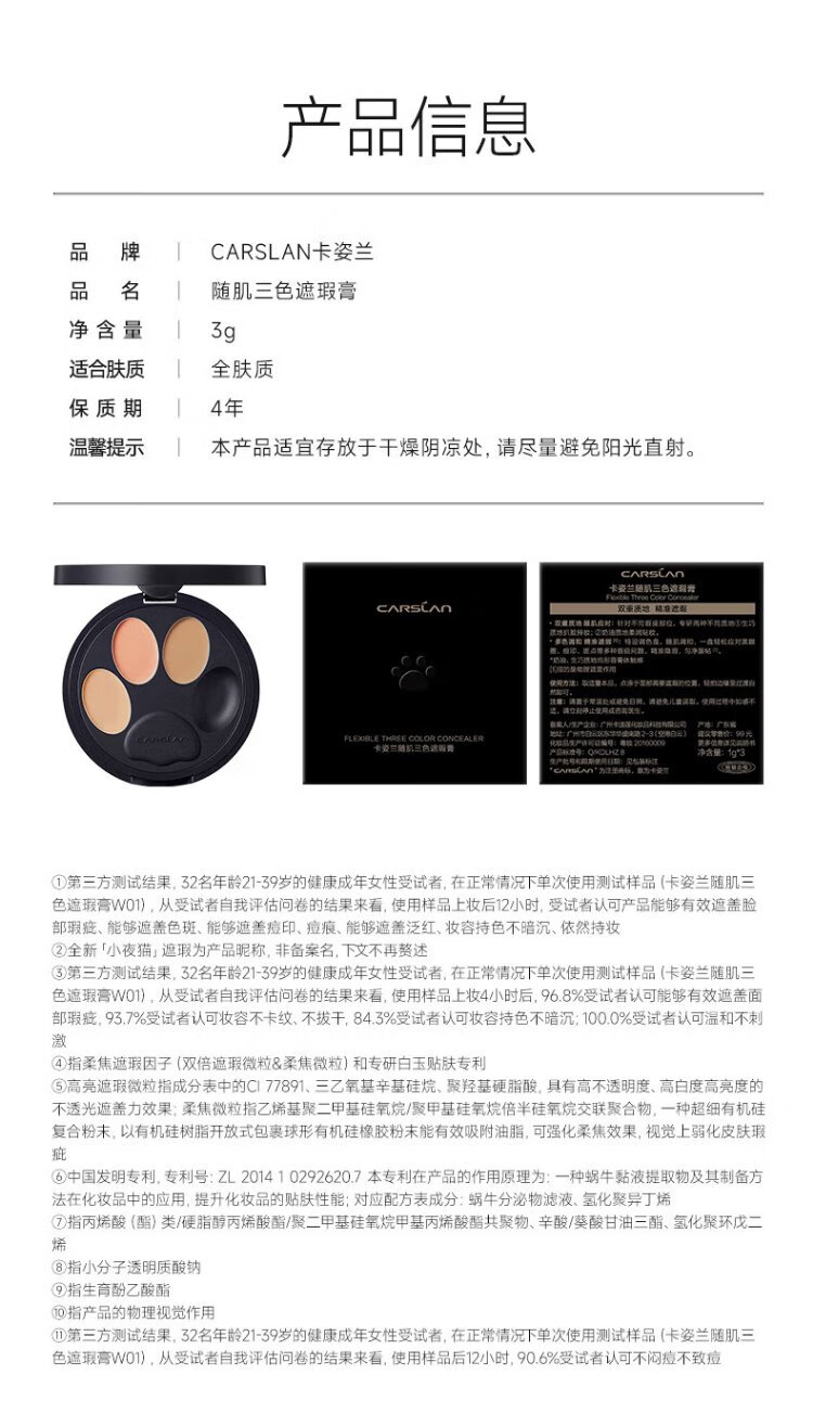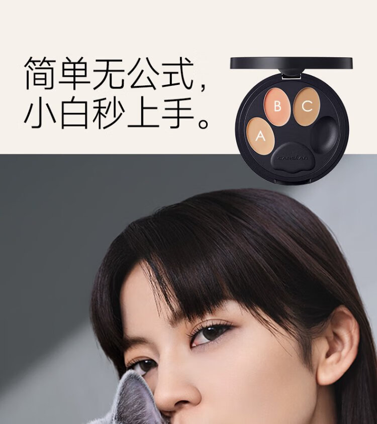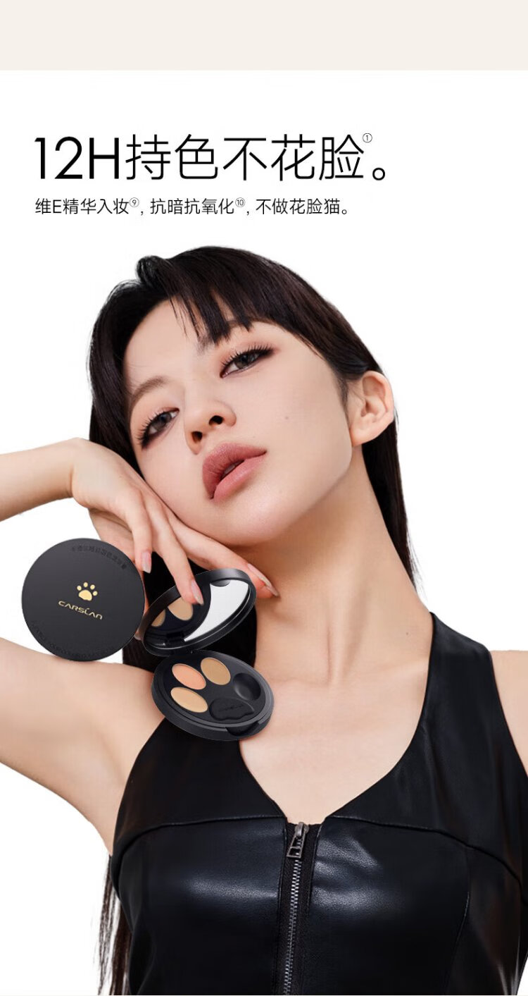 Carslan Little Night Cat Concealer Three-Color Concealer Palette Concealer Brush Brightens Dark Circles, Spots and Acne Marks 3g New Year's Gift for Women