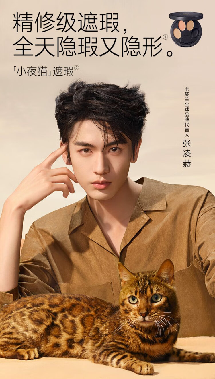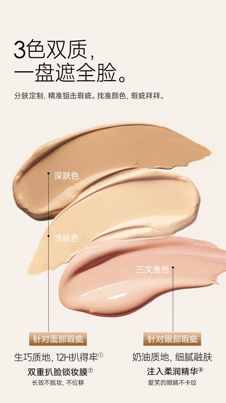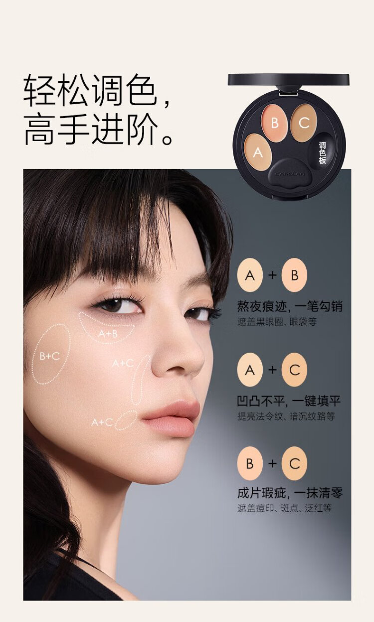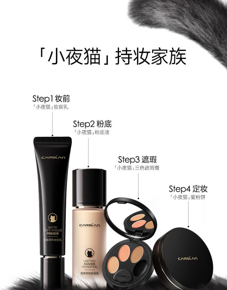 Carslan Little Night Cat Concealer Three-Color Concealer Palette Concealer Brush Brightens Dark Circles, Spots and Acne Marks 3g New Year's Gift for Women
