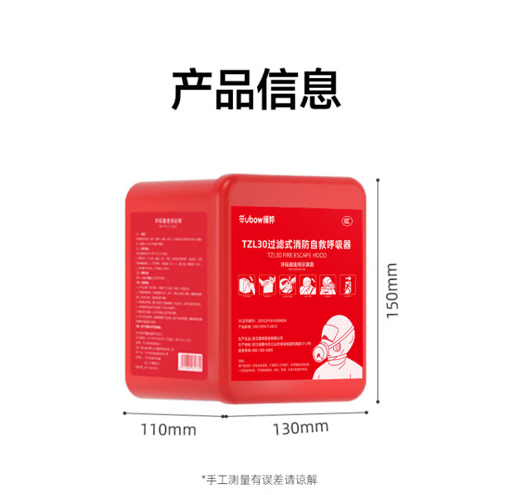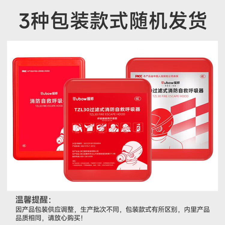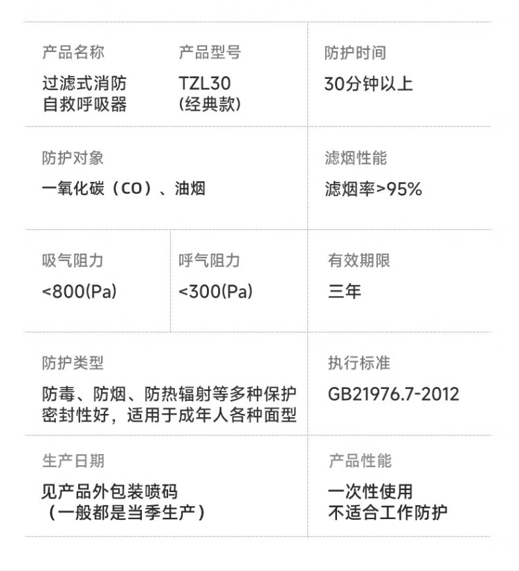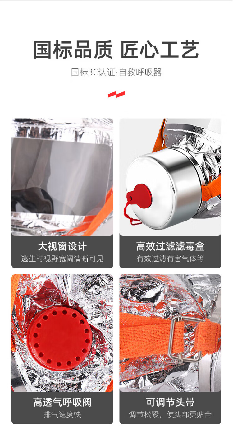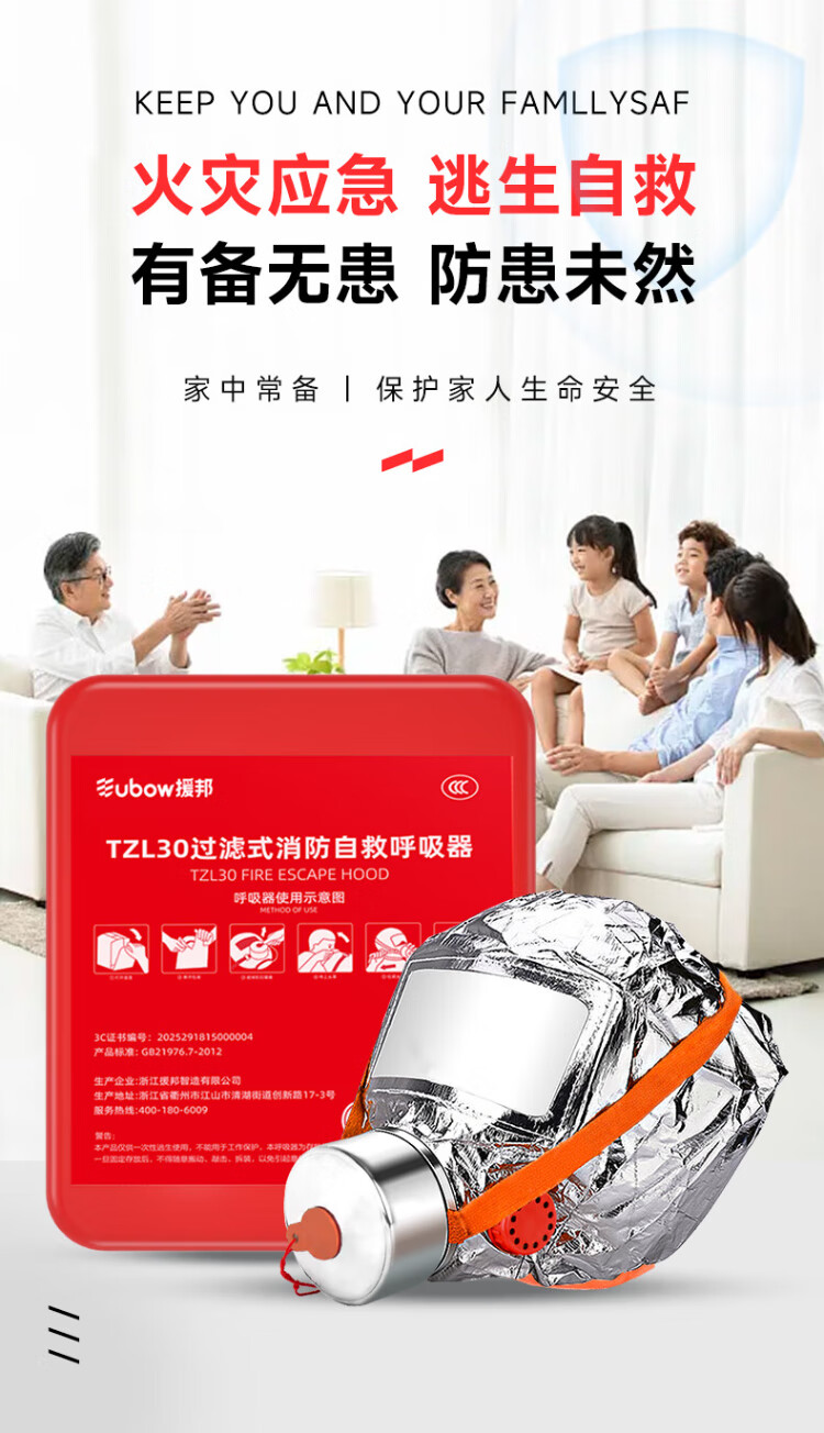 Yuanbang gas mask fire mask anti-smoke and fire protection 3C certified fire escape filter self-rescue respirator TZL30