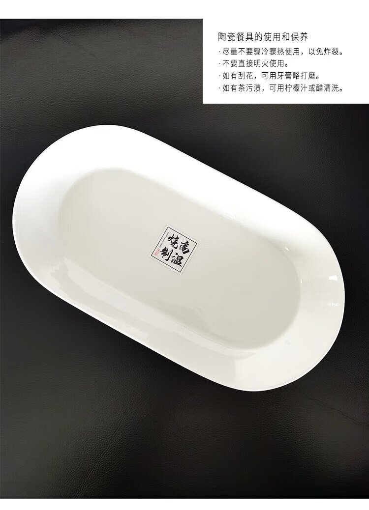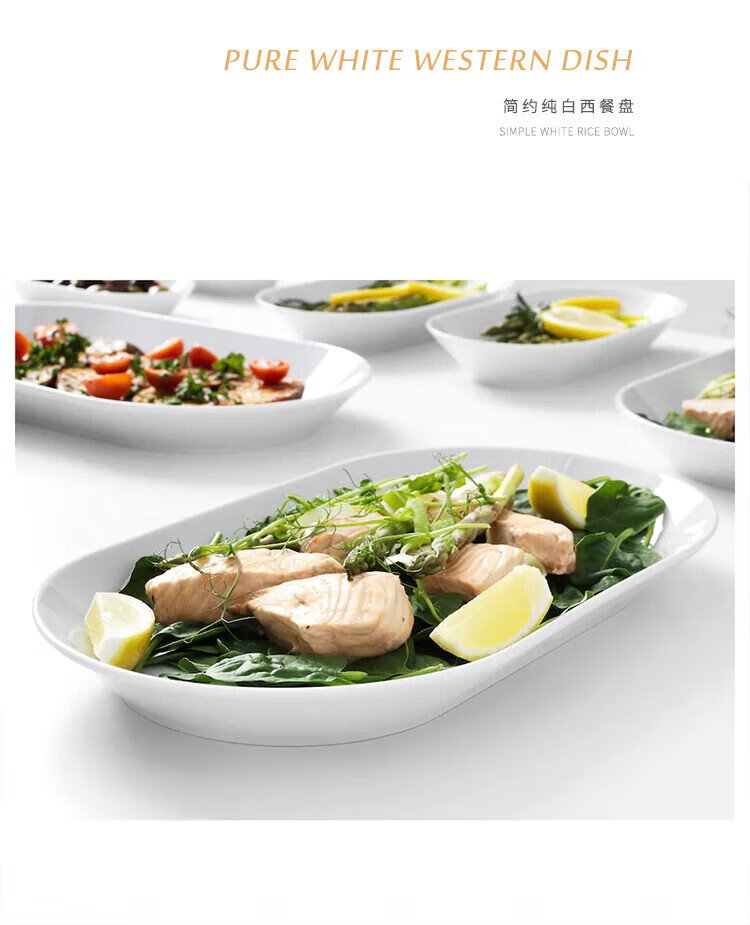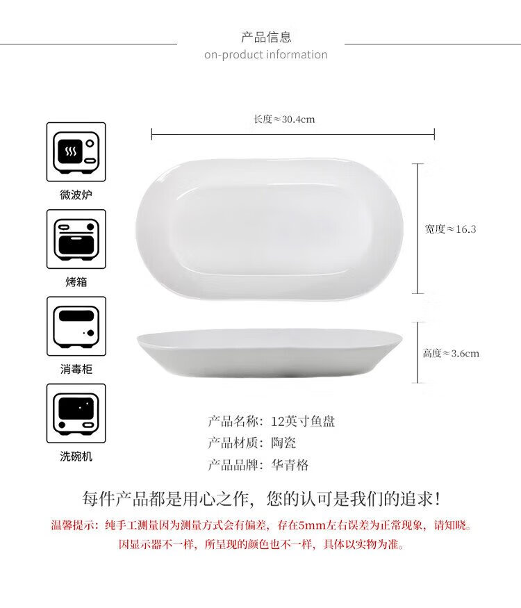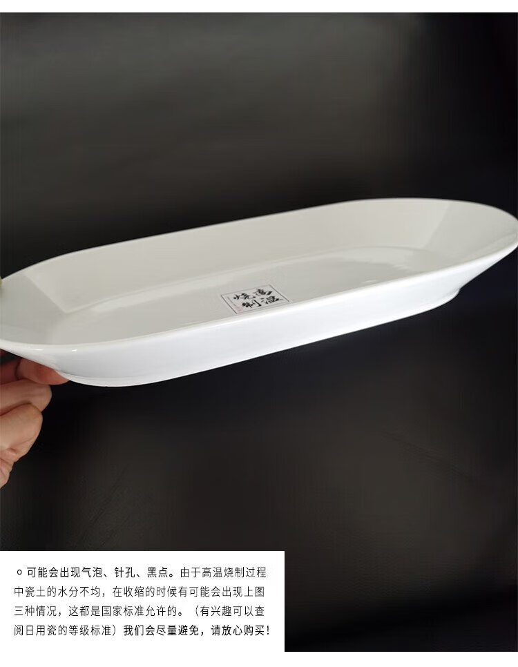 Huaqingge grilled fish plate ceramic fish plate high white porcelain household plate Western food plate 12-inch large deepened pure white steamed fish plate