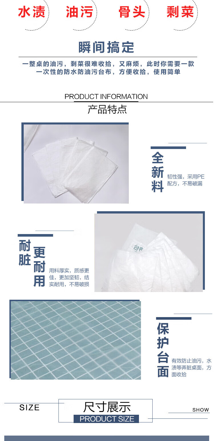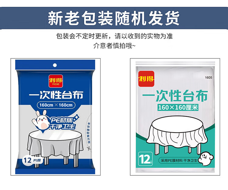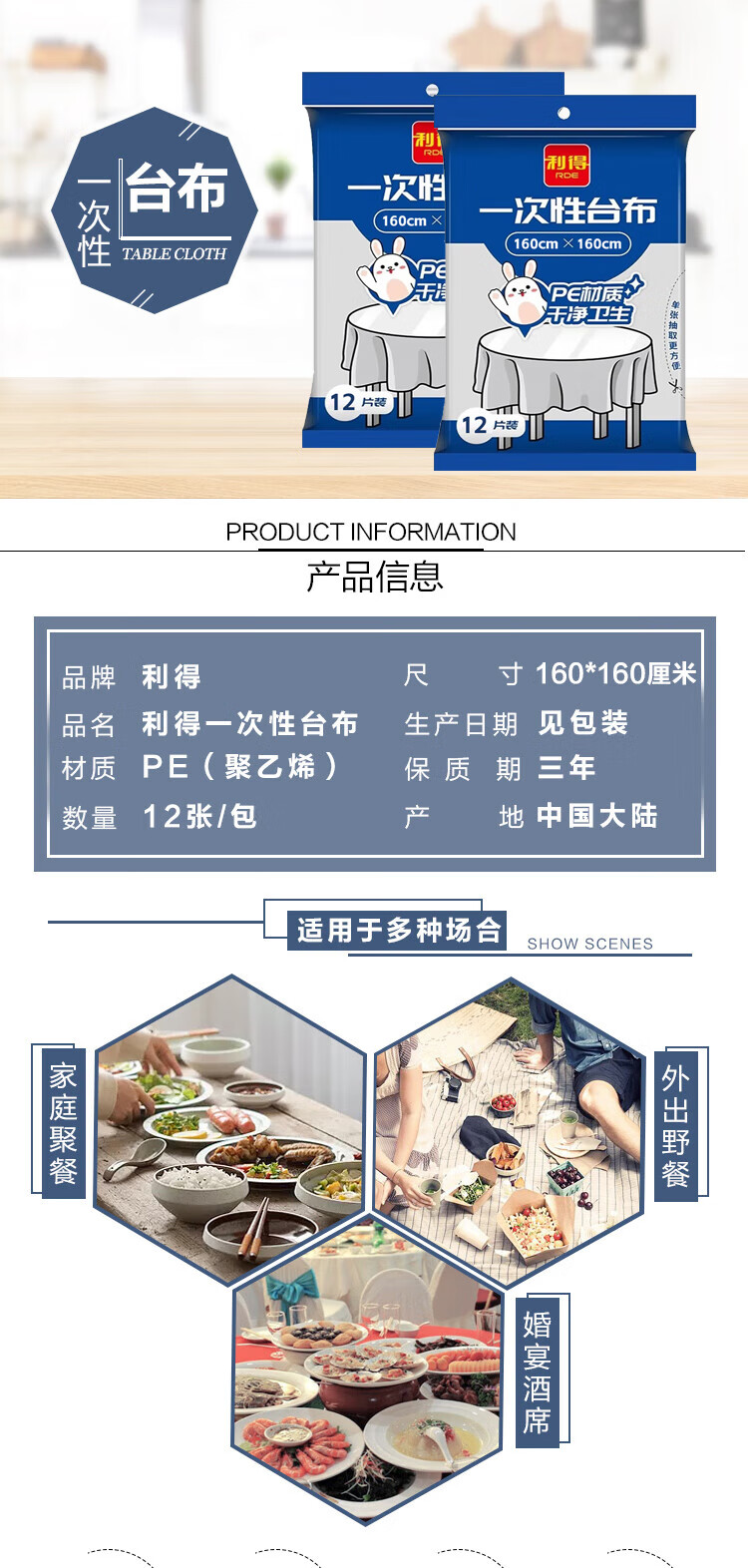 Lide disposable tablecloth 160*160cm*12 sheets, not easy to break, protect the tabletop, anti-fouling, thickened PE material