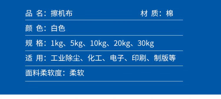 Kelibang machine wiping cloth cotton cloth industrial rag oil-absorbing cleaning cloth water-absorbing wiping cloth rag finger cloth non-linting rag rag white 1kg KB3206