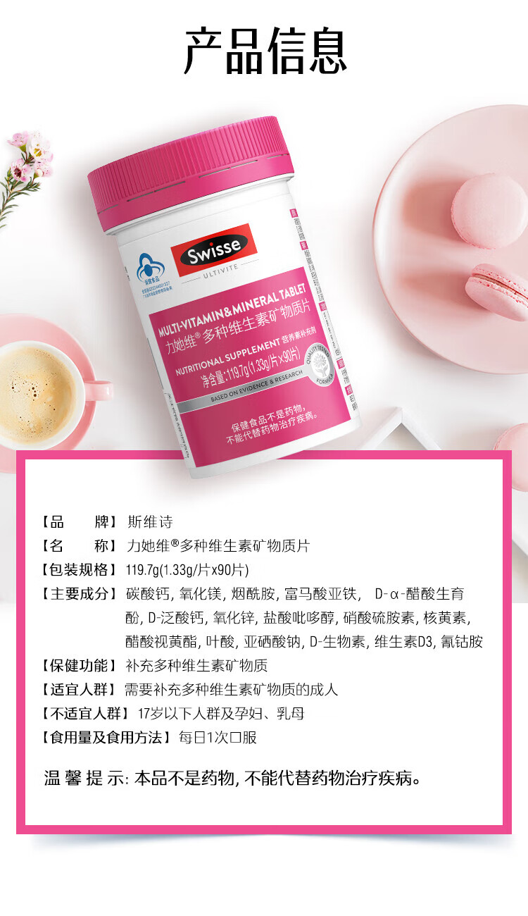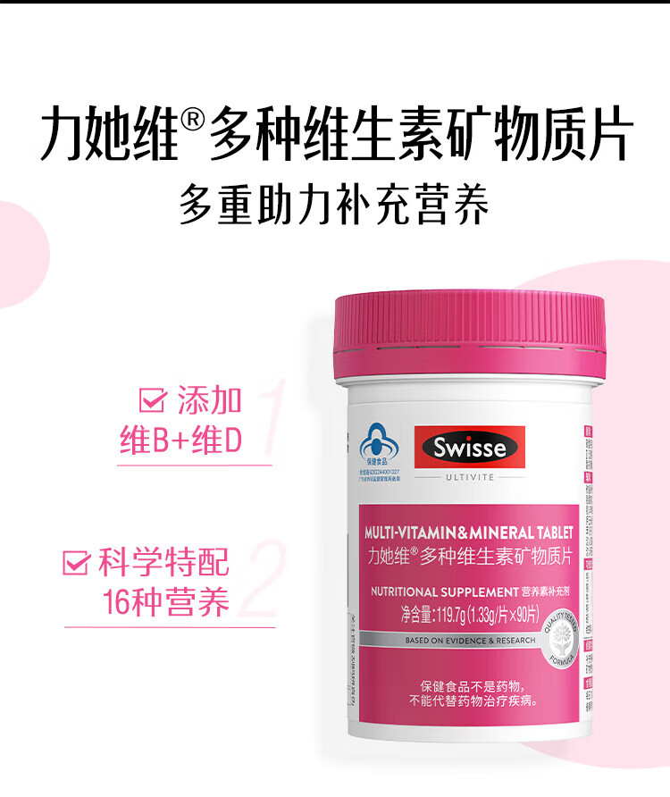 Swisse Women's Multivitamin Mineral Tablets Contains Vitamin B Complex, Vitamin D, Vitamin E, and Vitamin A 90 Tablets