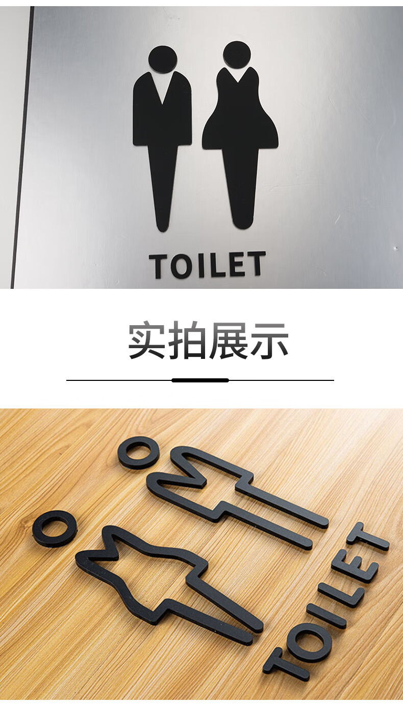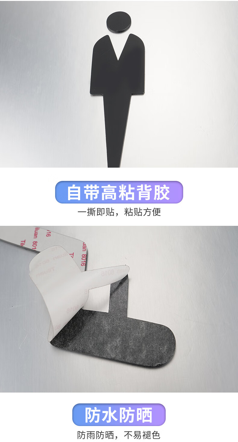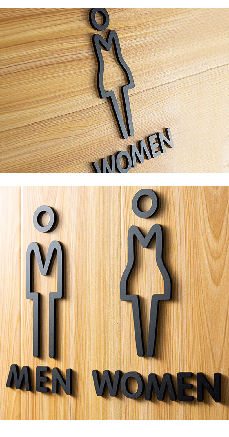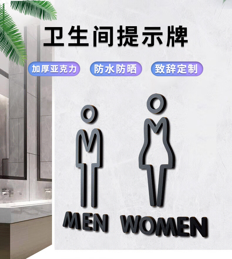 Bingyu restroom sign (1 pair for men and women) 25x16CM acrylic material with adhesive backing restroom sign and toilet prompt sign BYyn-373