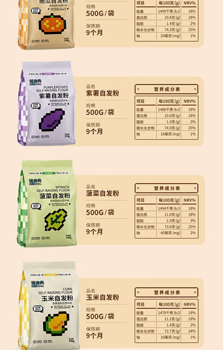 Xinliang Baked Purple Sweet Potato Self-rising Flour 500g Fruit and Vegetable Self-rising Flour Self-rising Flour Fruit and Vegetable Powder All-purpose Flour