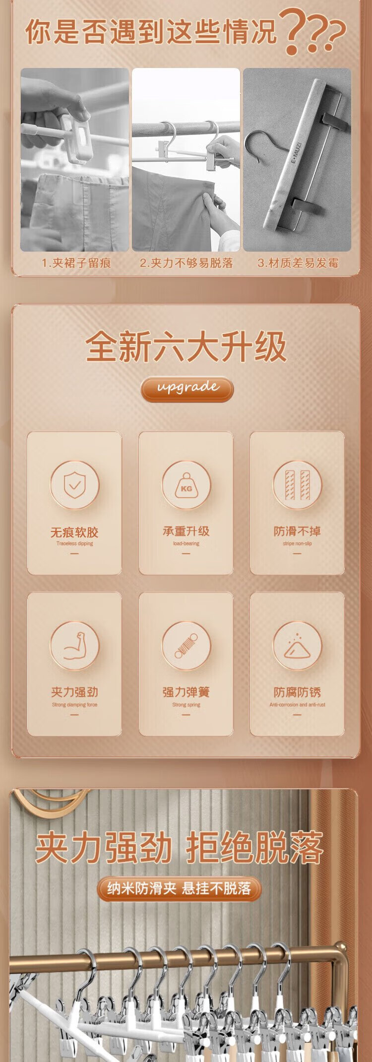 Jingxun Traceless Non-slip Pants Rack Pants Clip Light Luxury Drying Pants Clip Skirt Clip Retractable Adjustable Bold Clothes Hanger White 10 Count