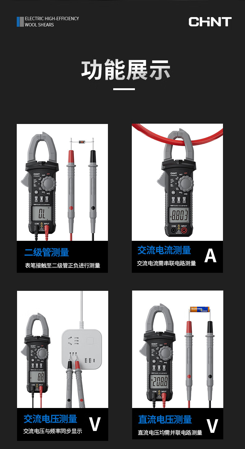 Chint (CHNT) digital clamp meter multimeter high-precision DC clamp meter smart multimeter ammeter clamp meter