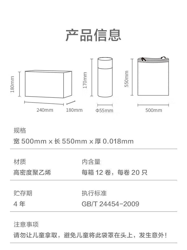 Made in Tokyo, drawstring garbage bags 50*55cm*240 pieces, extra thick 18 1.8 silk portable kitchen household thickened large size