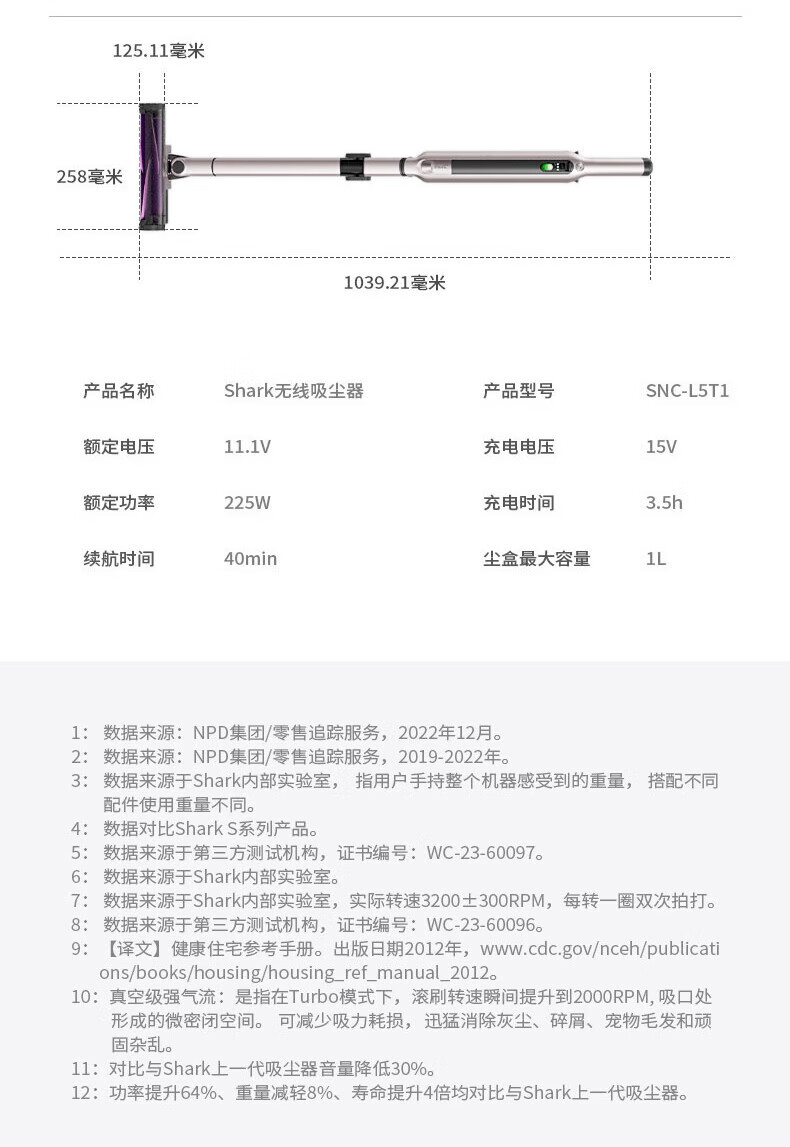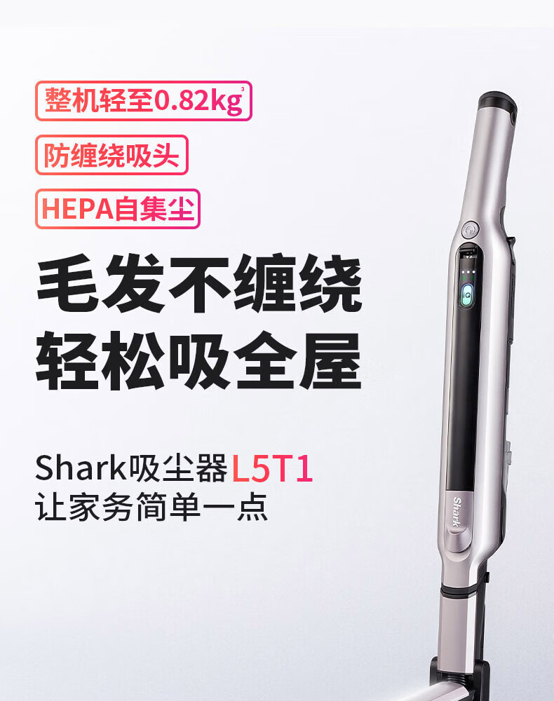 SHARK wireless anti-tangle vacuum cleaner L5T1 fully automatic cleaning pet hair high-power self-dust collection base station folding arm