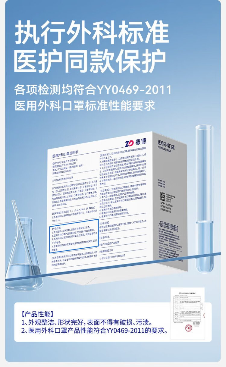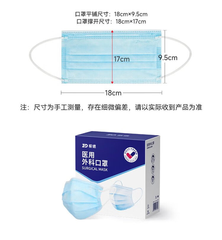 Zhende disposable medical surgical masks individually packaged adult and children's masks anti-dust haze masks 100 pieces