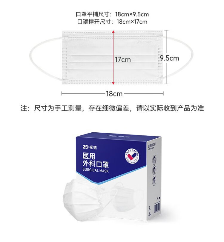 Zhende Medical Surgical Mask White Adult Individually Packed One Bag Winter Warmth Protection Dust Haze 100