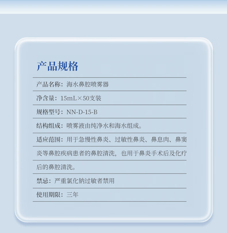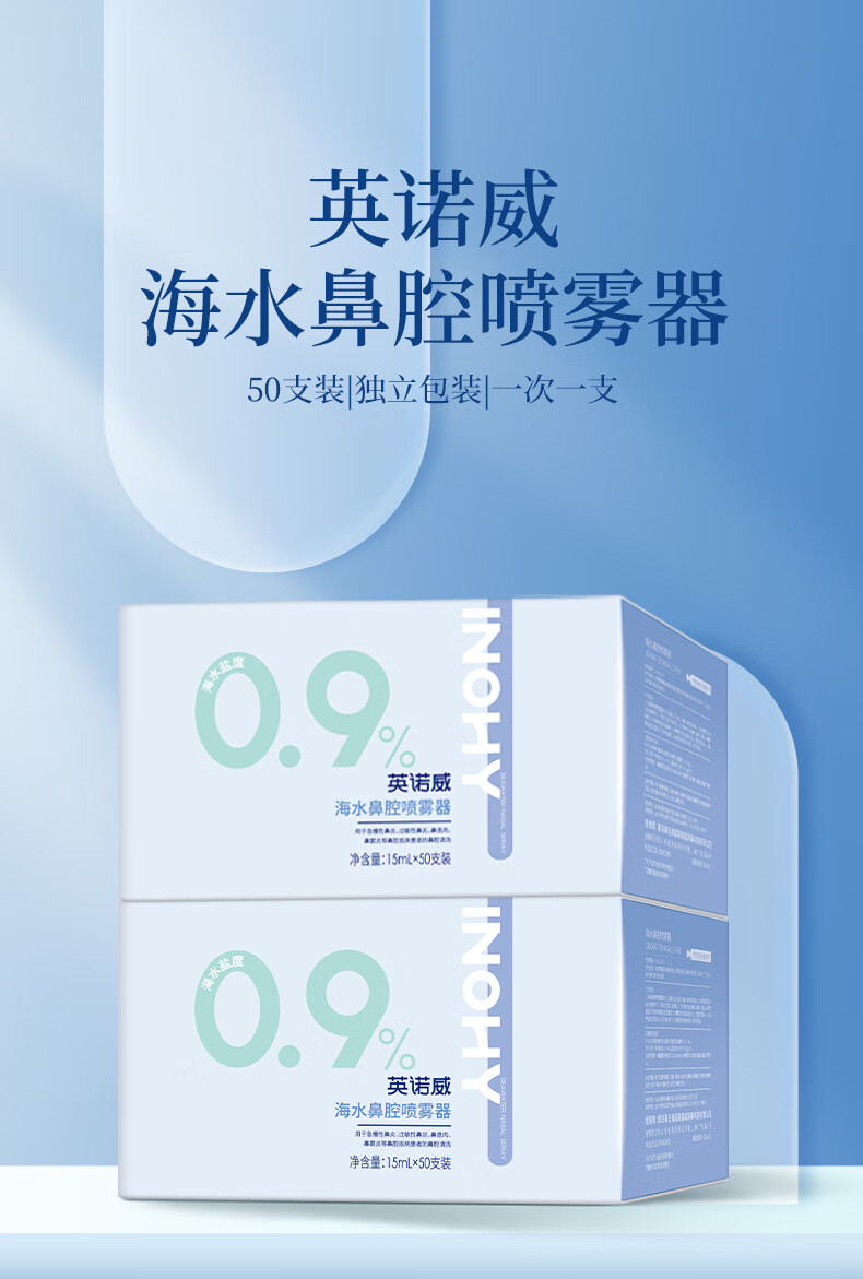 Hainuo Innovi physiological seawater nasal cleansing solution nasal washing physiological saline 0.9% isotonic nasal washing 15ml * 50 bottles