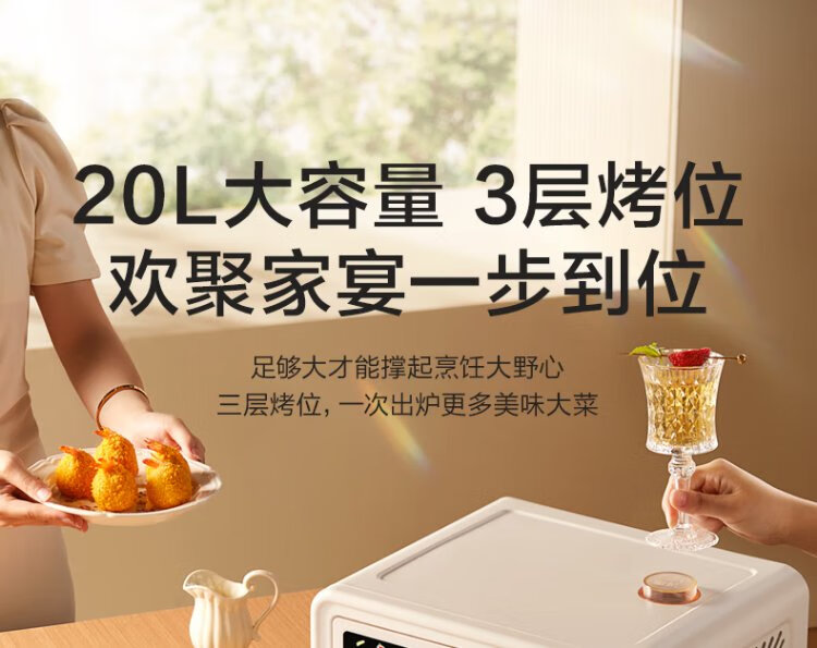 SUPOR 20L household wind stove electric oven, micro-steam roasting, frying, hot air circulation fermentation all-in-one machine, one-click drying, wide-area temperature control OD20AK812