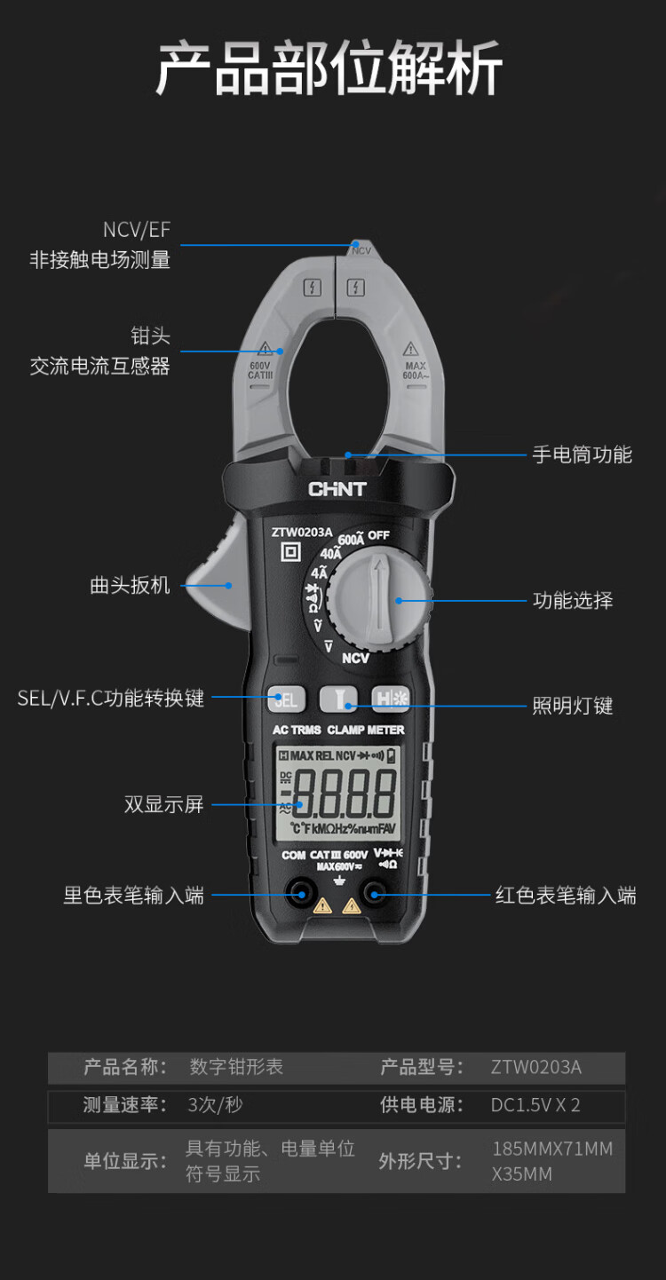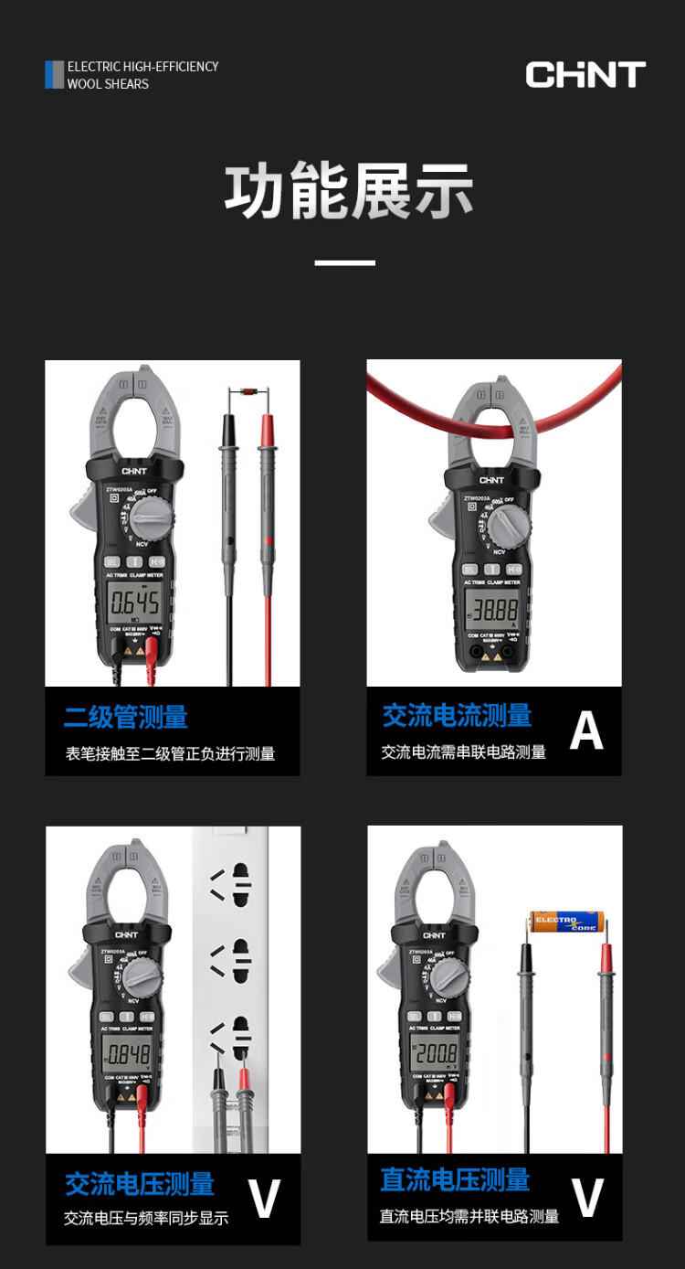Chint (CHNT) digital clamp meter clamp-type multimeter high-precision DC clamp meter smart multimeter ammeter