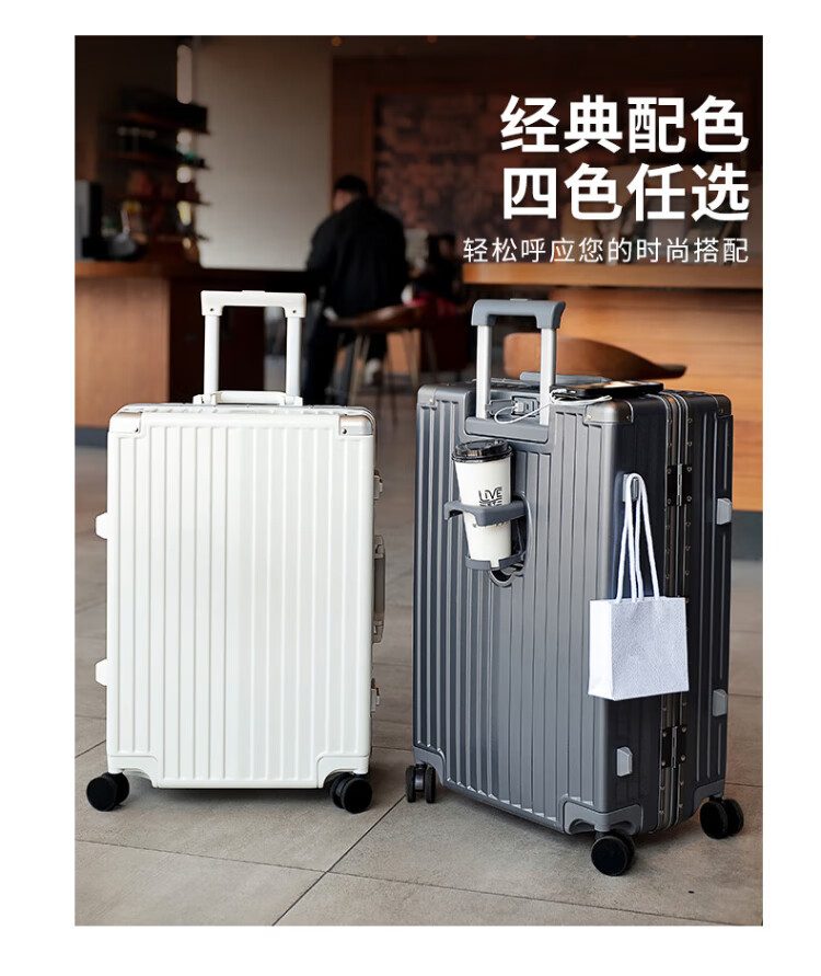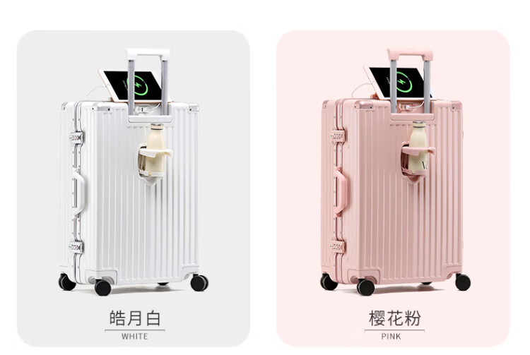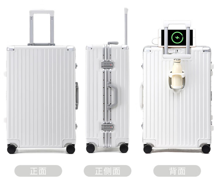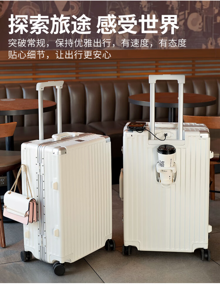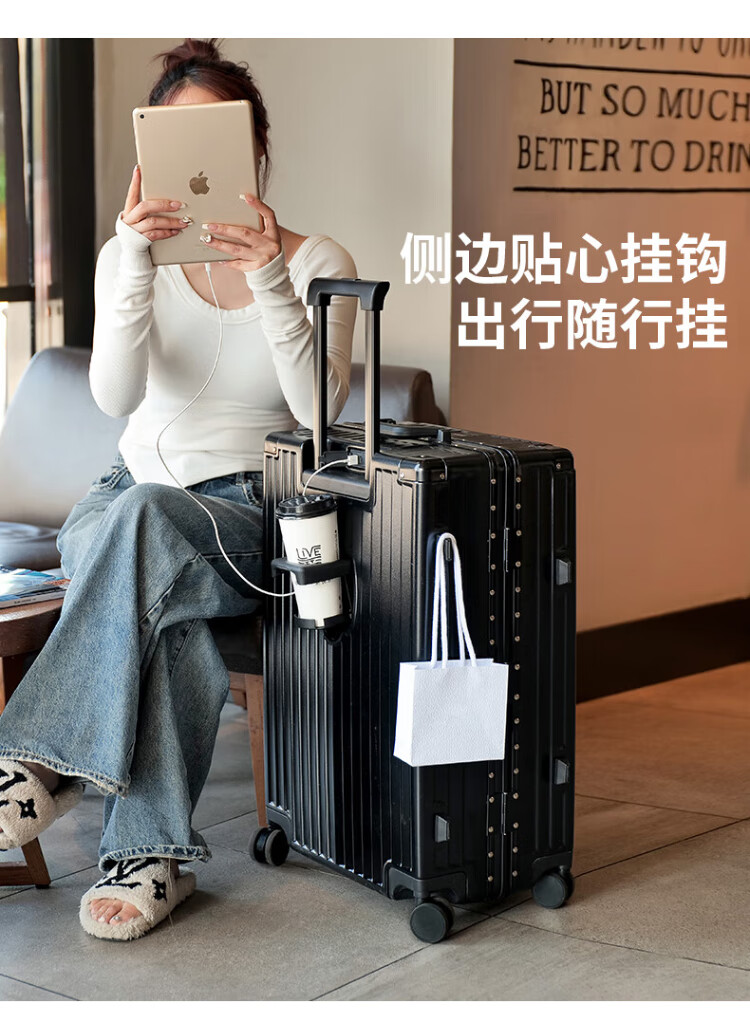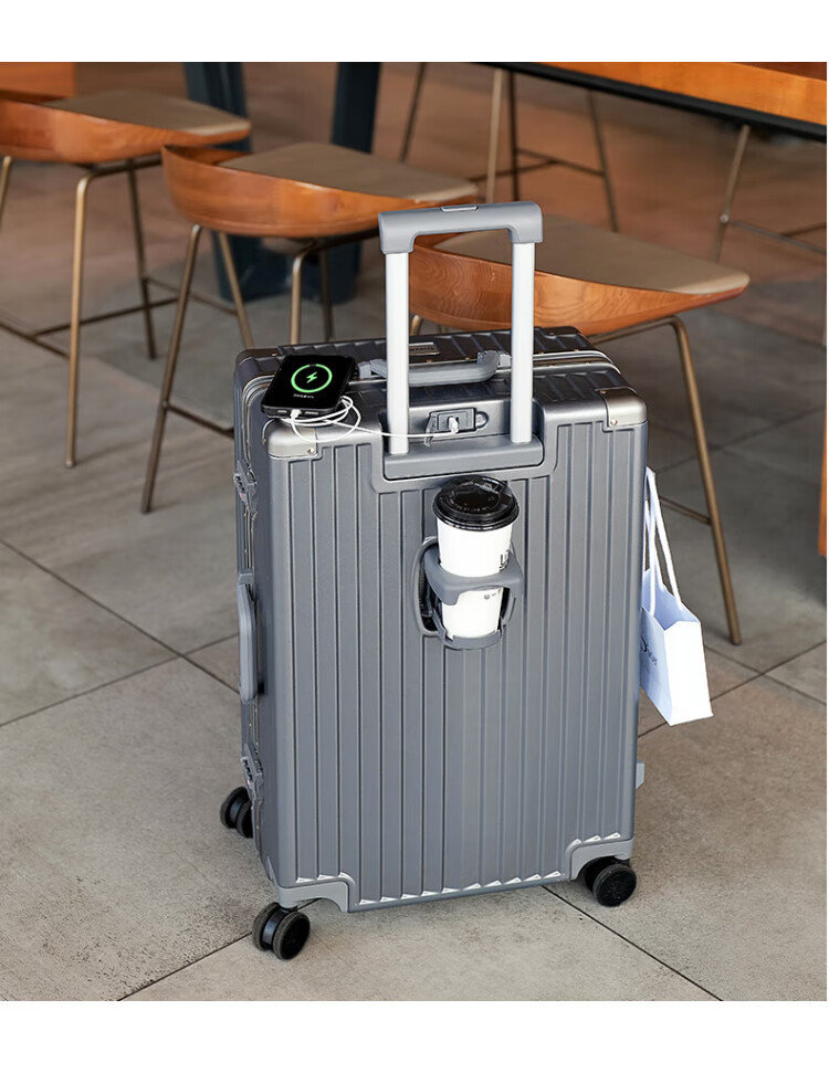 DULA aluminum frame suitcase Gaoyan trolley case cup holder USB charging travel password case leather case Yaoye black 24 inches