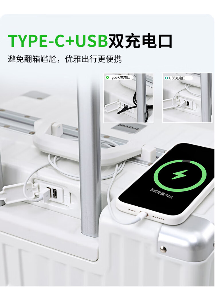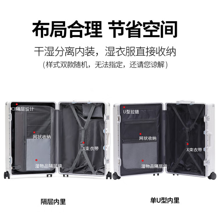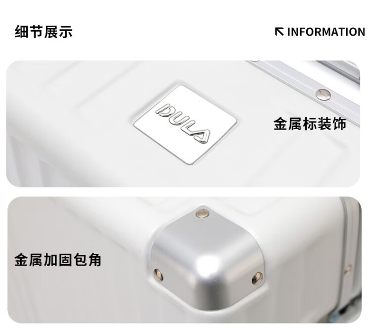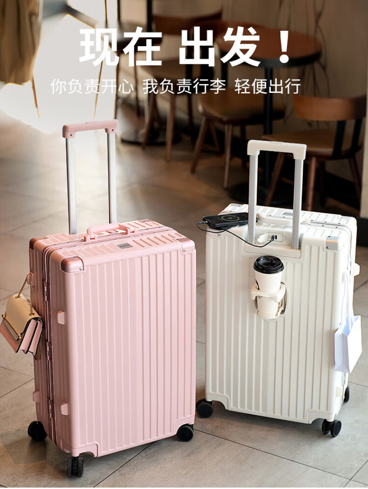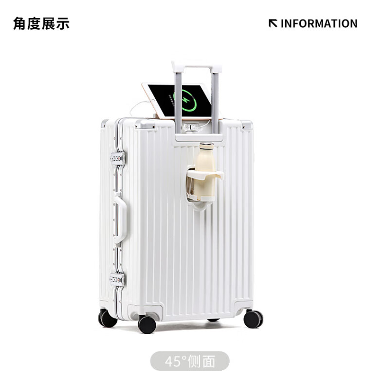 DULA aluminum frame suitcase Gaoyan trolley case cup holder USB charging travel password case leather case Yaoye black 24 inches