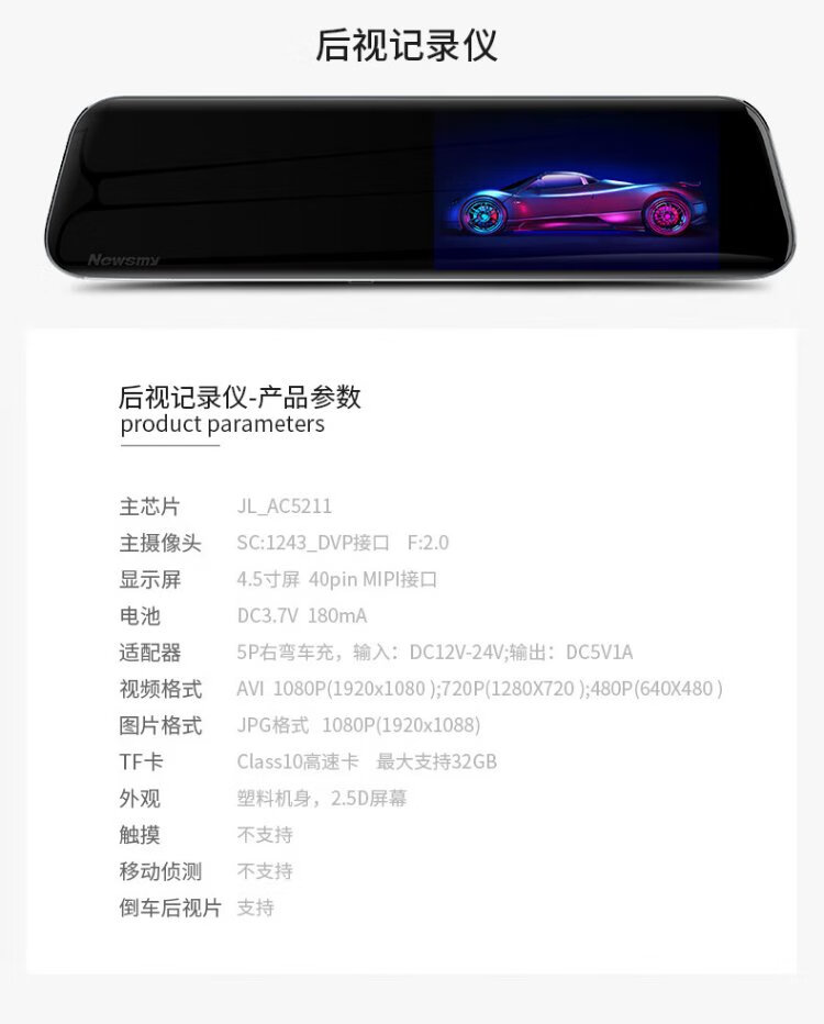 Newsmy Newman driving recorder A13 HD starlight night vision front and rear dual recording reversing image rearview mirror