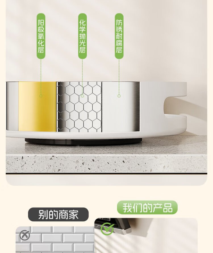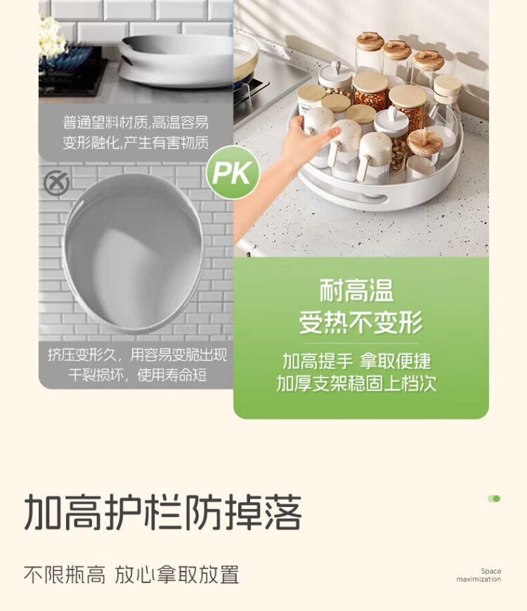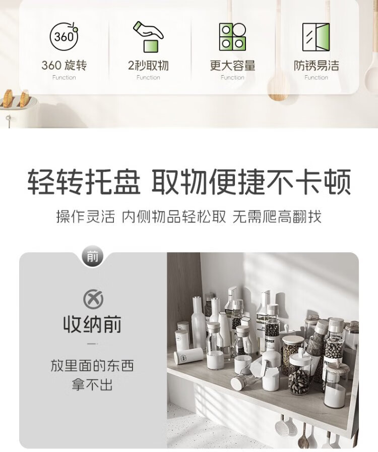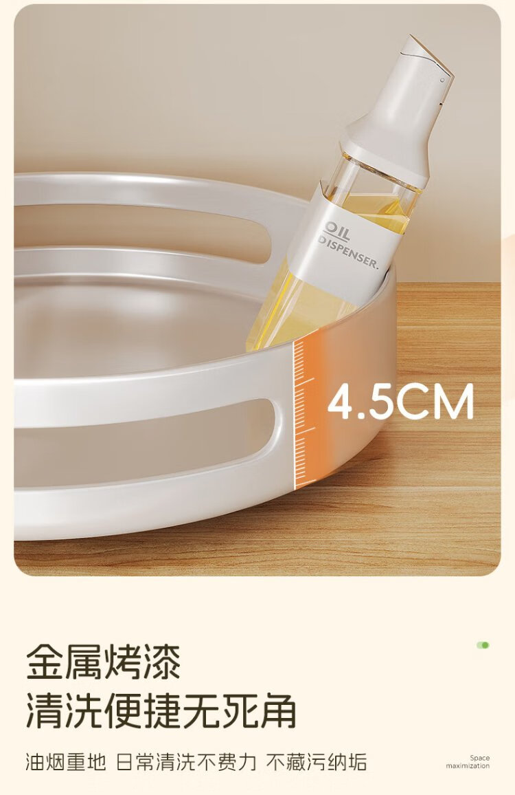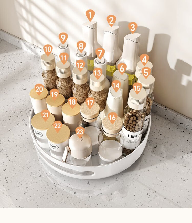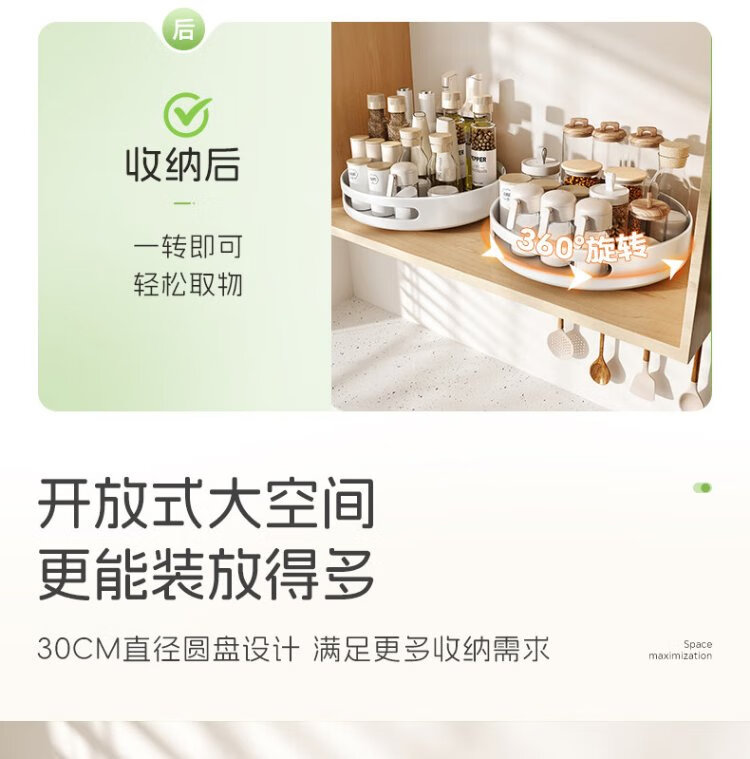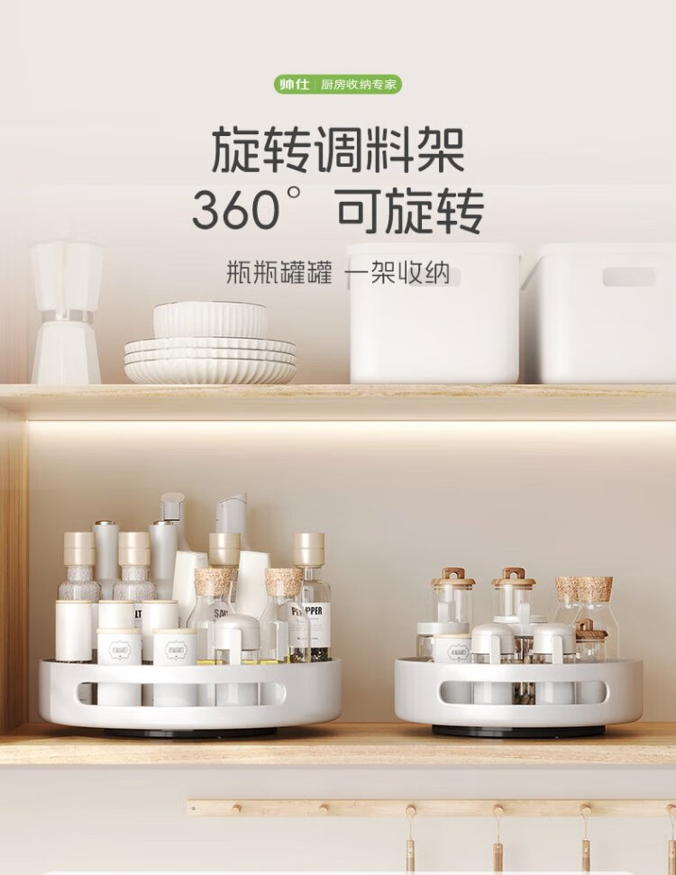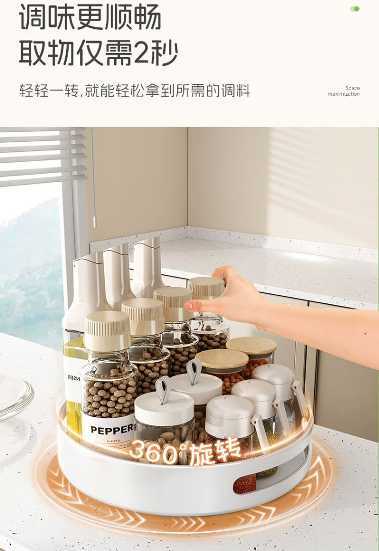 Shuaishi kitchen rack rotating spice rack condiment storage rack condiment storage countertop tray white 30cm