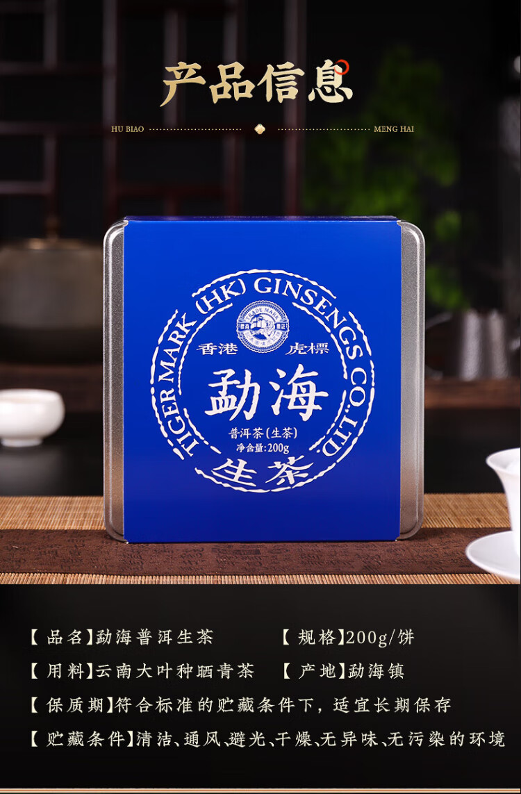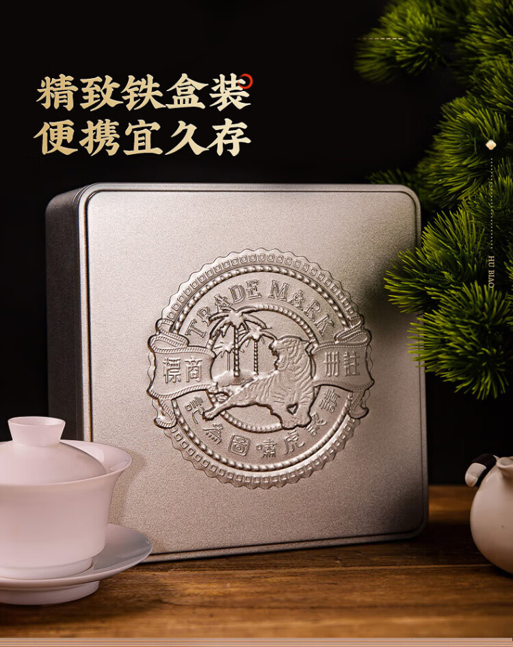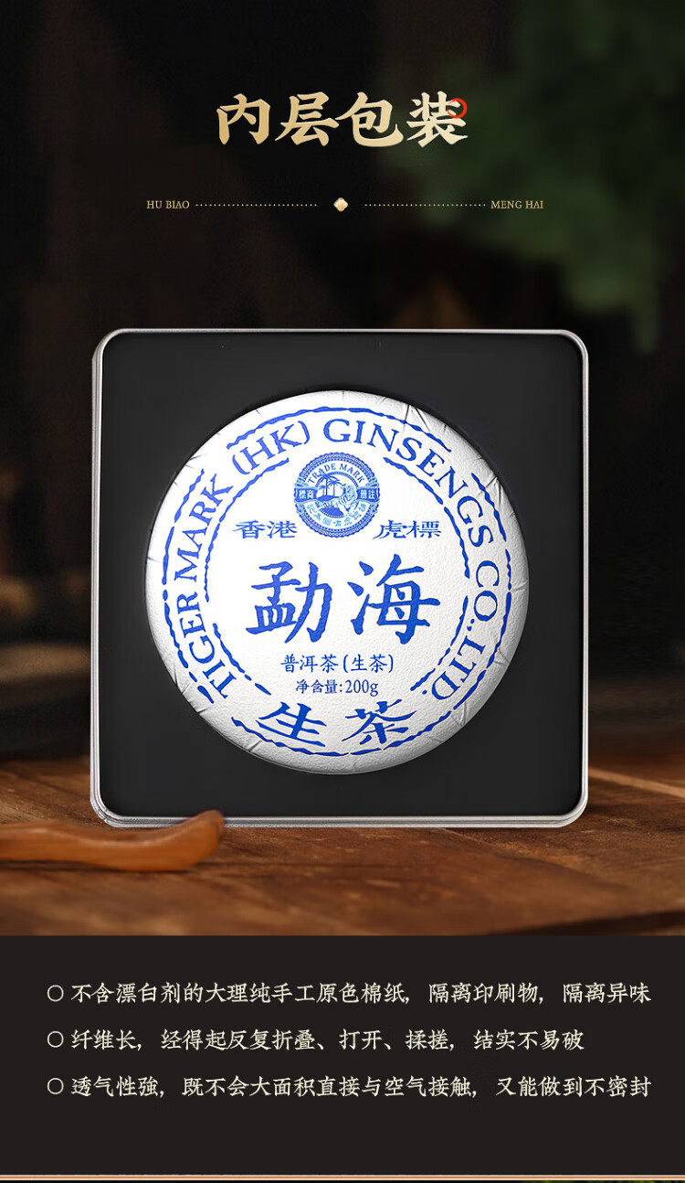 Tiger Brand China Hong Kong Brand Tea Pu'er Tea Menghai Pu'er Raw Tea 200g Iron Box for Self-Drinking and Gifting
