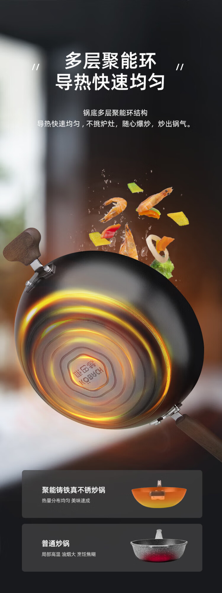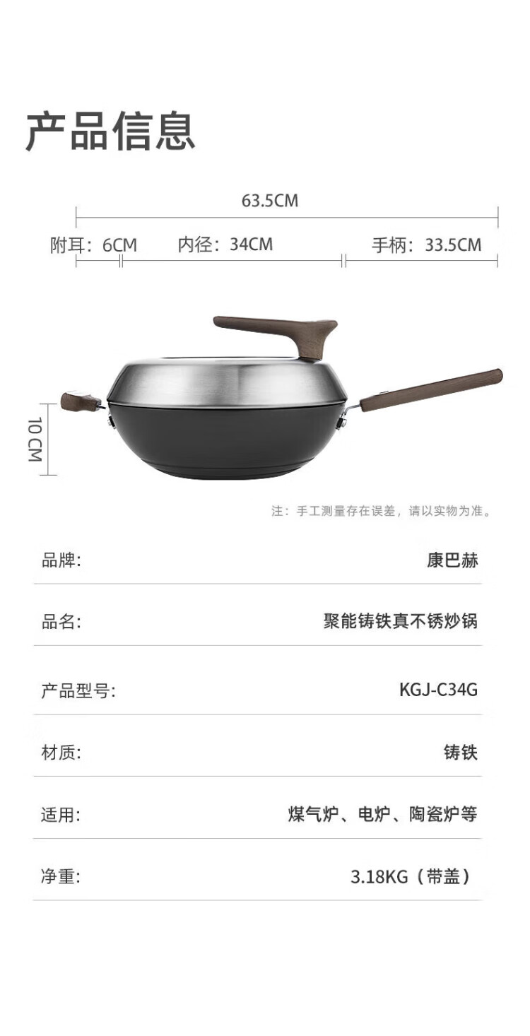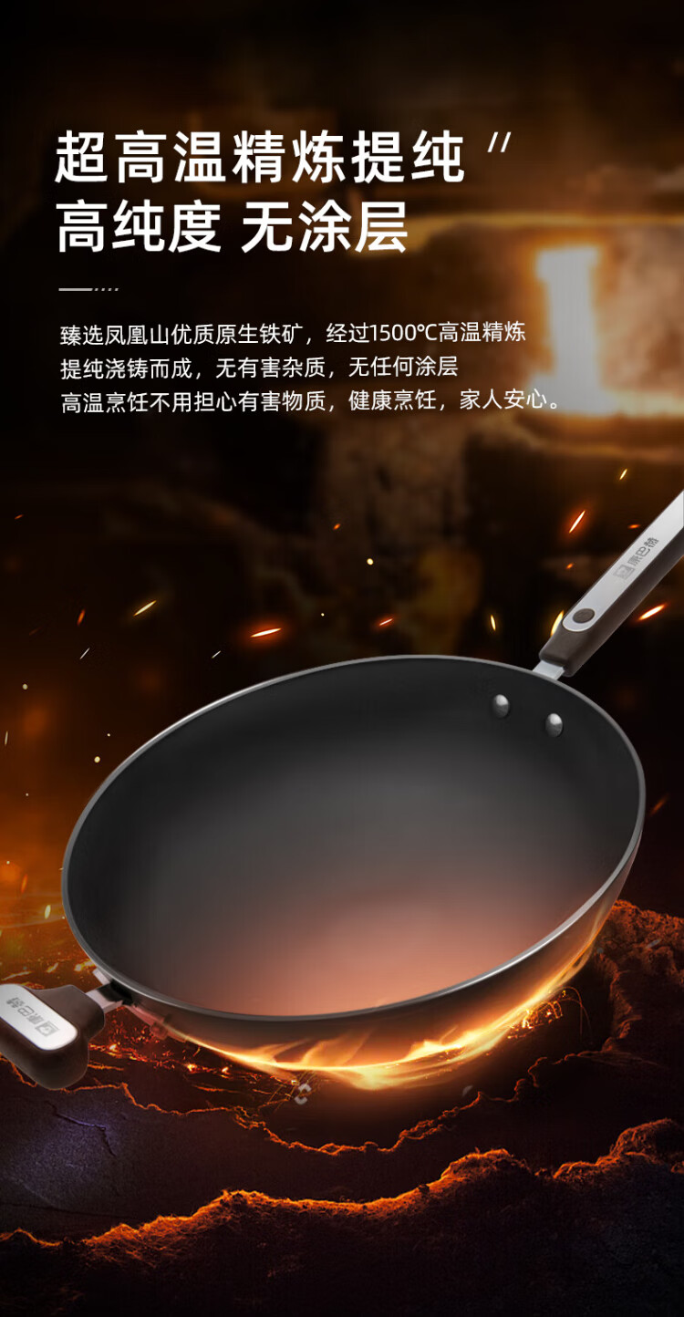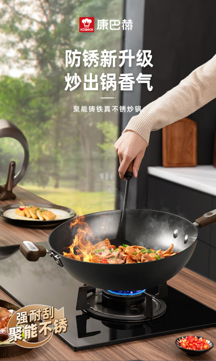 Kangbach iron pot uncoated wok cast iron true stainless wok 34cm induction cooker open flame universal