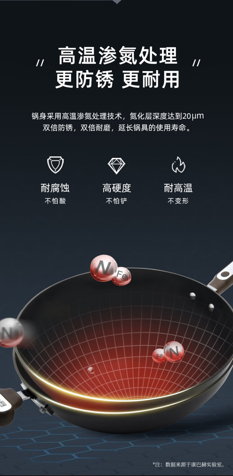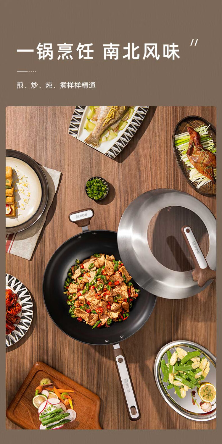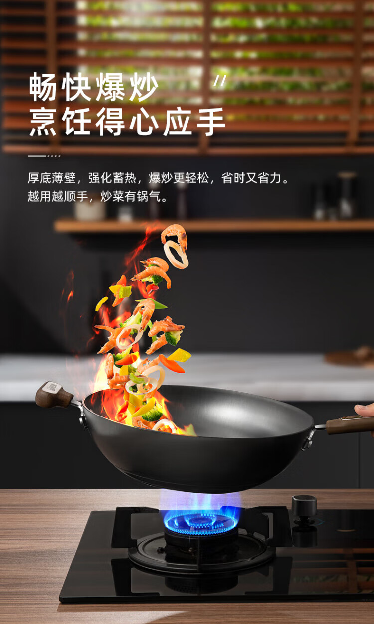 Kangbach iron pot uncoated wok cast iron true stainless wok 34cm induction cooker open flame universal