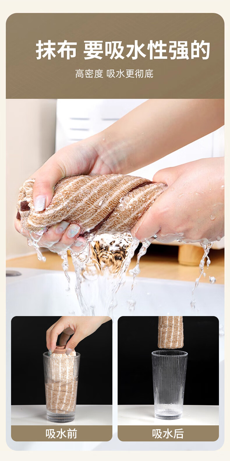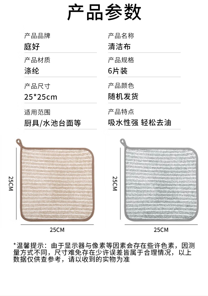 Tinghao dishcloth kitchen rags 6 pieces, absorbent, easy to clean, not easy to shed, not easy to stain, household cleaning towel