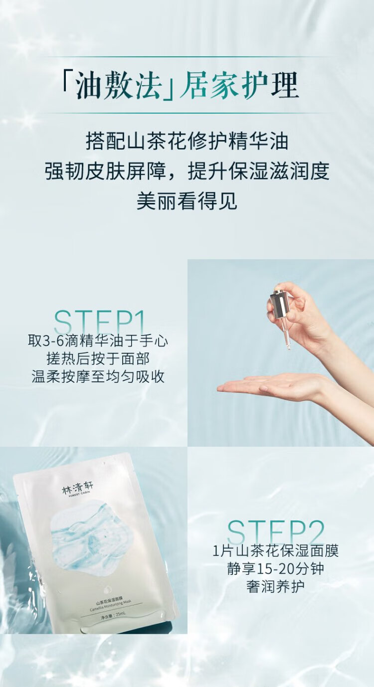 Lin Qingxuan Camellia Moisturizing Mask Box, Hydrating, Moisturizing and Glossy, Oil Application Patch Type (25ml*5 pieces)