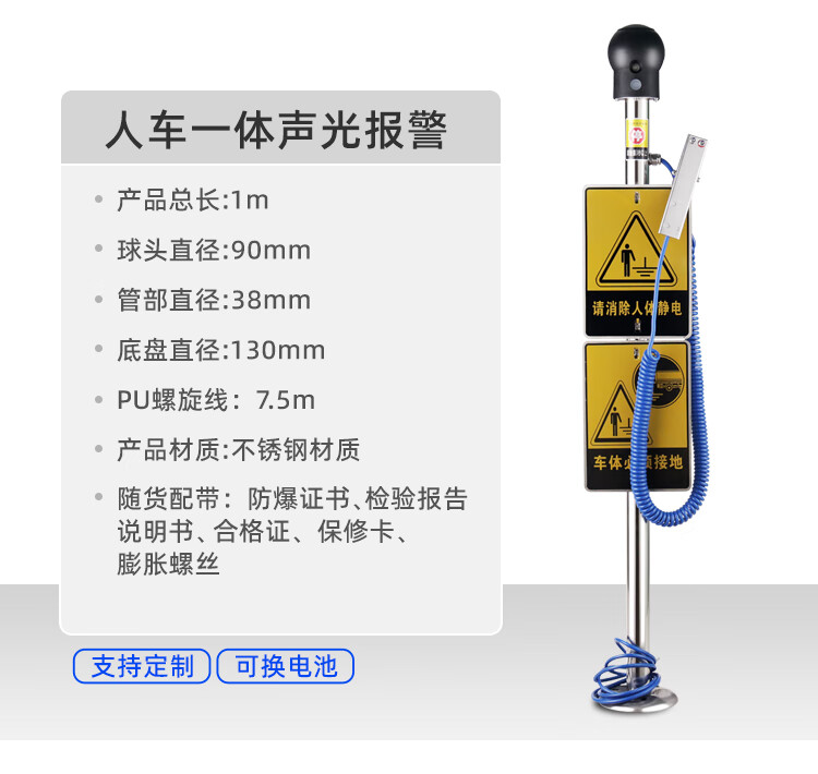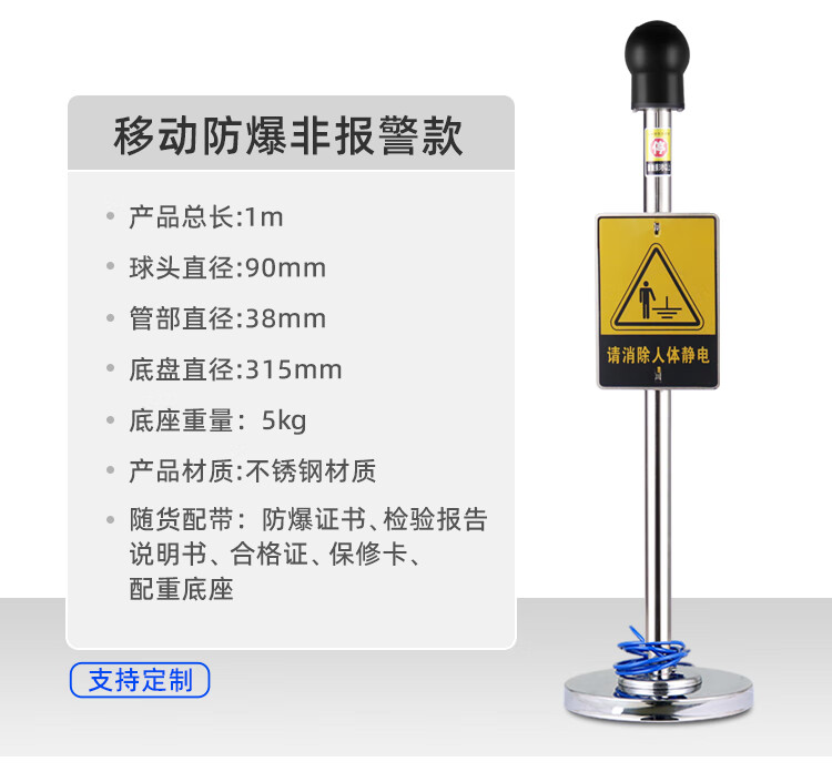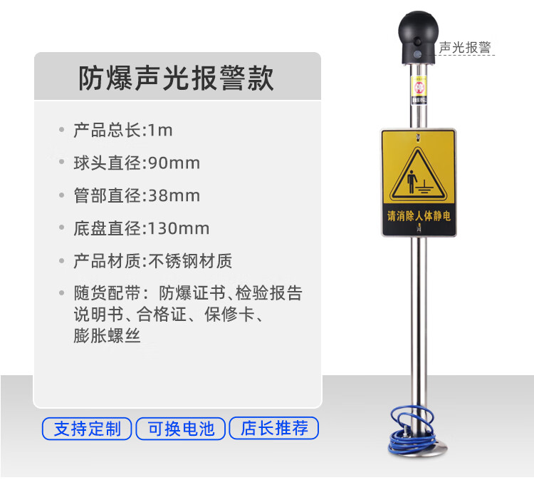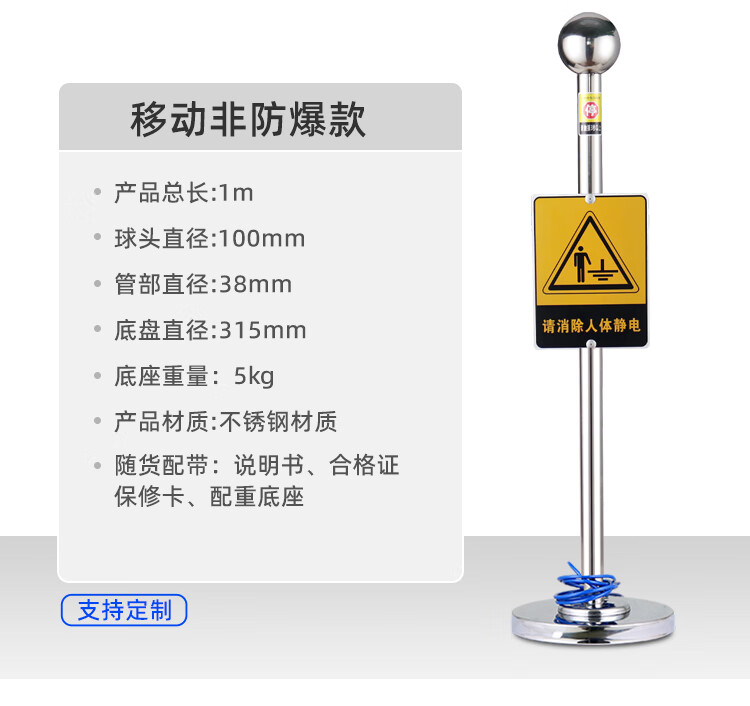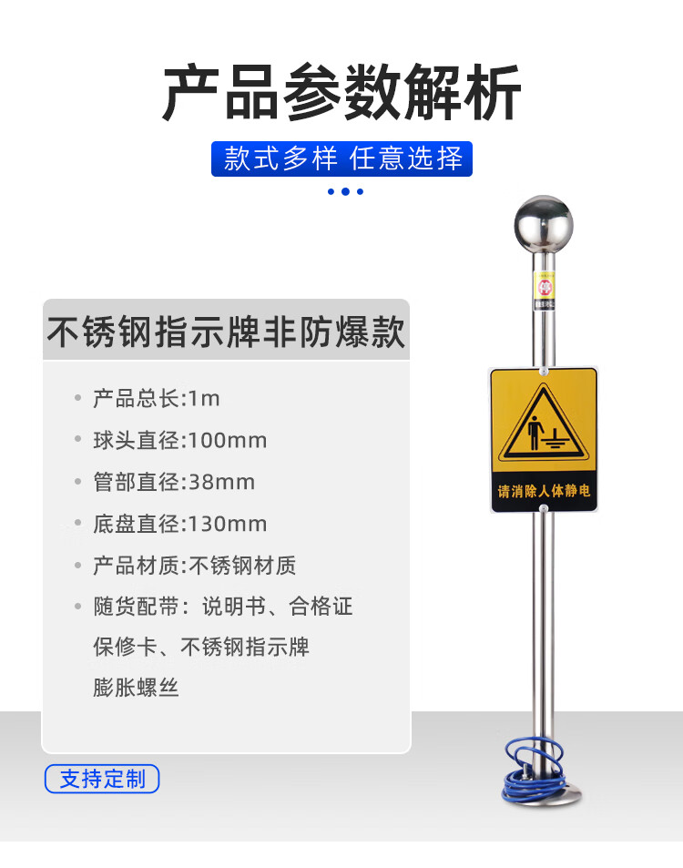 Chuanglai intrinsically safe human body electrostatic discharger elimination ball stainless steel sign non-explosion-proof 304 big brand (38 tubes) industrial electrostatic discharge bollard instrument touch guide removal device